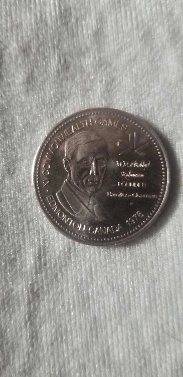 Check out this commemorative Terry Williams coin from the 1930 British Empire Games held in Hamilton! The obverse features Williams in action, while the reverse shows Adam Herbert Robinson, a founder of the Commonwealth Games. It is in used condition. Don't miss your chance to own a piece of sports history! Grab it before it sprints away! As a heads up, if you're seeing this ad, the coin is still up for grabs!