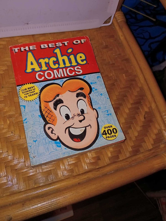Relive the best stories from the past 70 years with this vintage Archie Comics book, featuring over 400 pages of classic comic fun. This item is used and shows some wear, adding to its retro charm. A perfect addition to any comic book collection! While specific details are not listed, enjoy the charm of Archie and the gang in this compilation. Looking to add a bit of Riverdale to your life? This comic book could be the ticket! If the ad is up, it's still available for purchase.