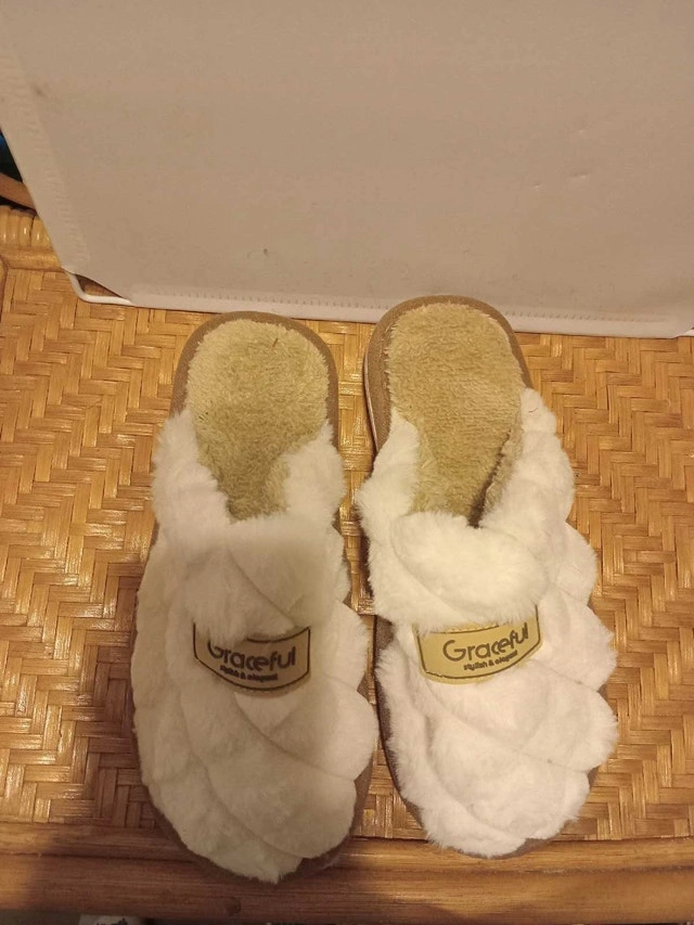 Treat your feet to the ultimate comfort with these Graceful slippers, designed for a stylish and elegant lounging experience. These slippers feature a plush, cozy interior and a quilted, soft exterior, perfect for keeping your feet warm and relaxed. These slippers are in used condition, showing minor signs of wear but maintaining their overall comfort and appeal. Features: * Soft, quilted exterior * Plush, cozy interior The average price for similar slippers is $20. Given the good condition, these are priced at $10 If this ad is still up, then yes, these slippers are still available!