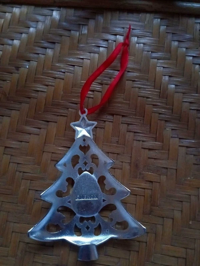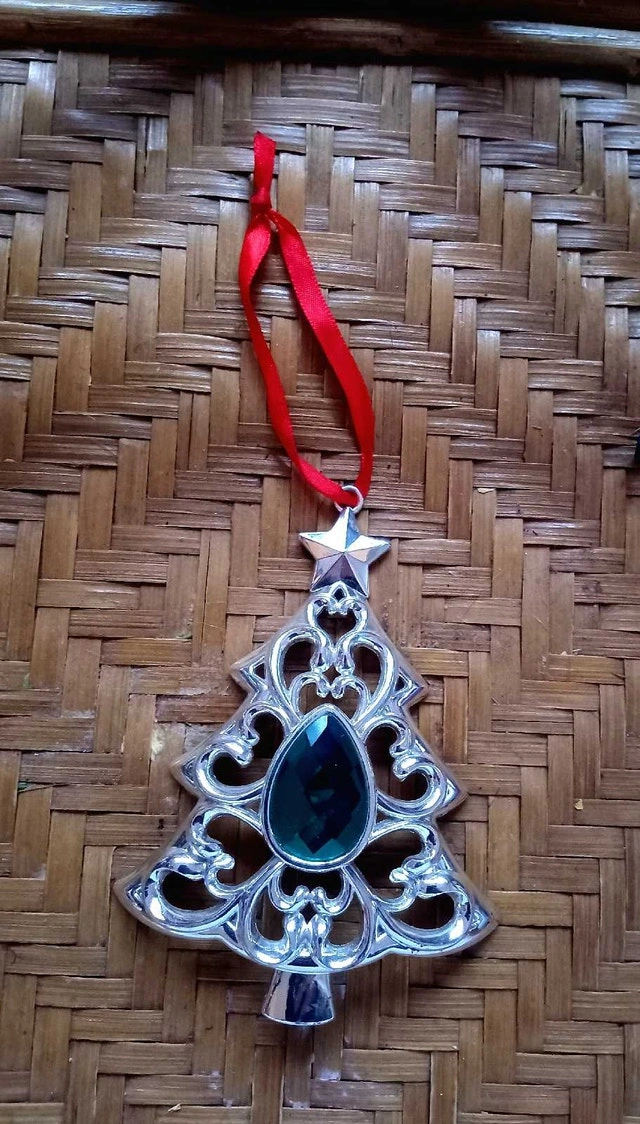 Add a touch of vintage elegance to your Christmas tree with this beautiful Trifari Christmas tree ornament, showcasing a silver-tone filigree design and a faux emerald stone. This is a used item, but it's in very good condition, ready to bring some sparkle to your holiday season! This ornament is ready to hang and spread Christmas cheer; remember, if the ad is up, it's still available!