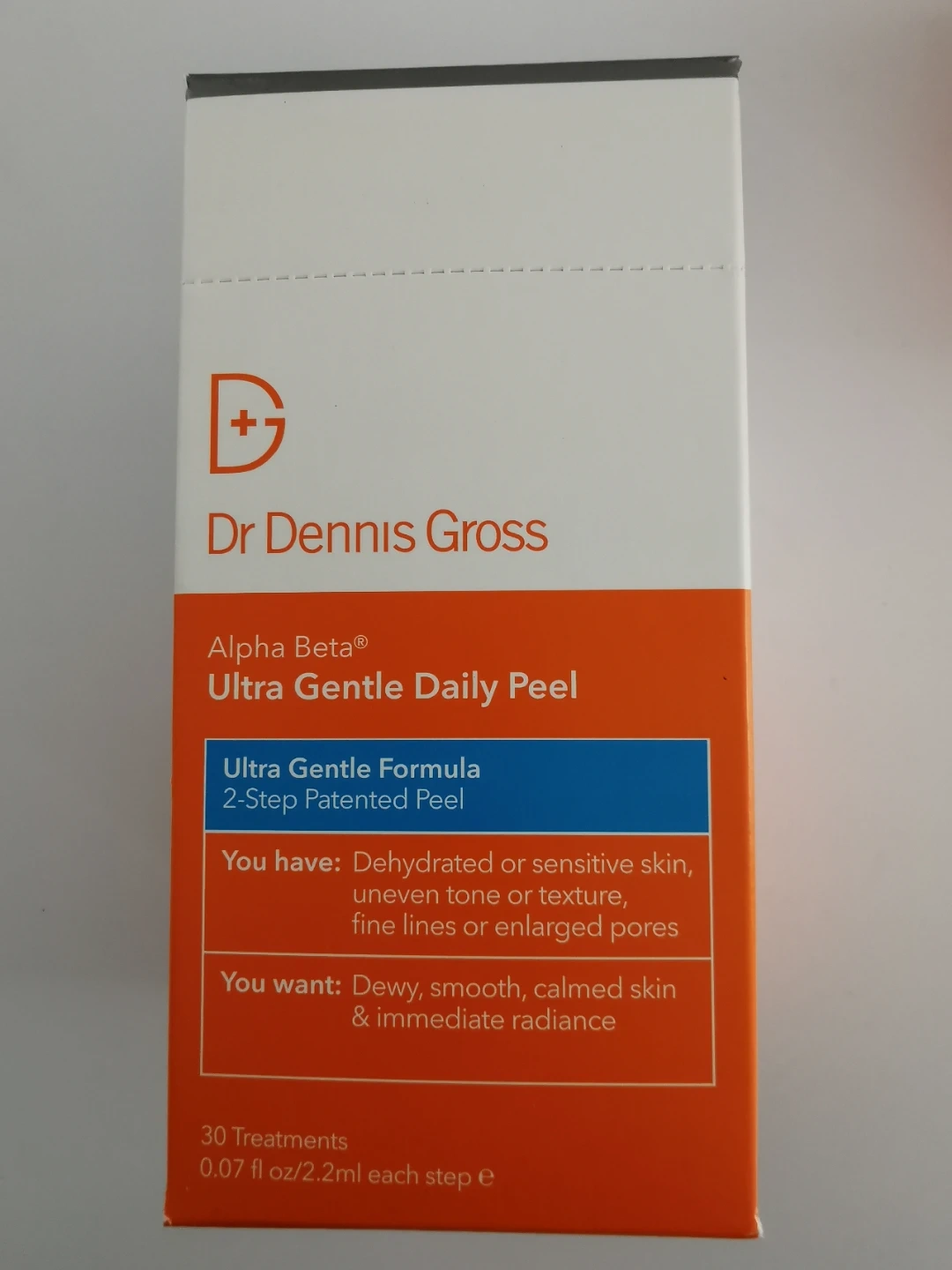 Renew your skin with Dr. Dennis Gross Alpha Beta Ultra Gentle Daily Peel, a two-step patented formula! This box of 30 treatments is designed for dehydrated or sensitive skin, targeting uneven texture, fine lines, and enlarged pores.