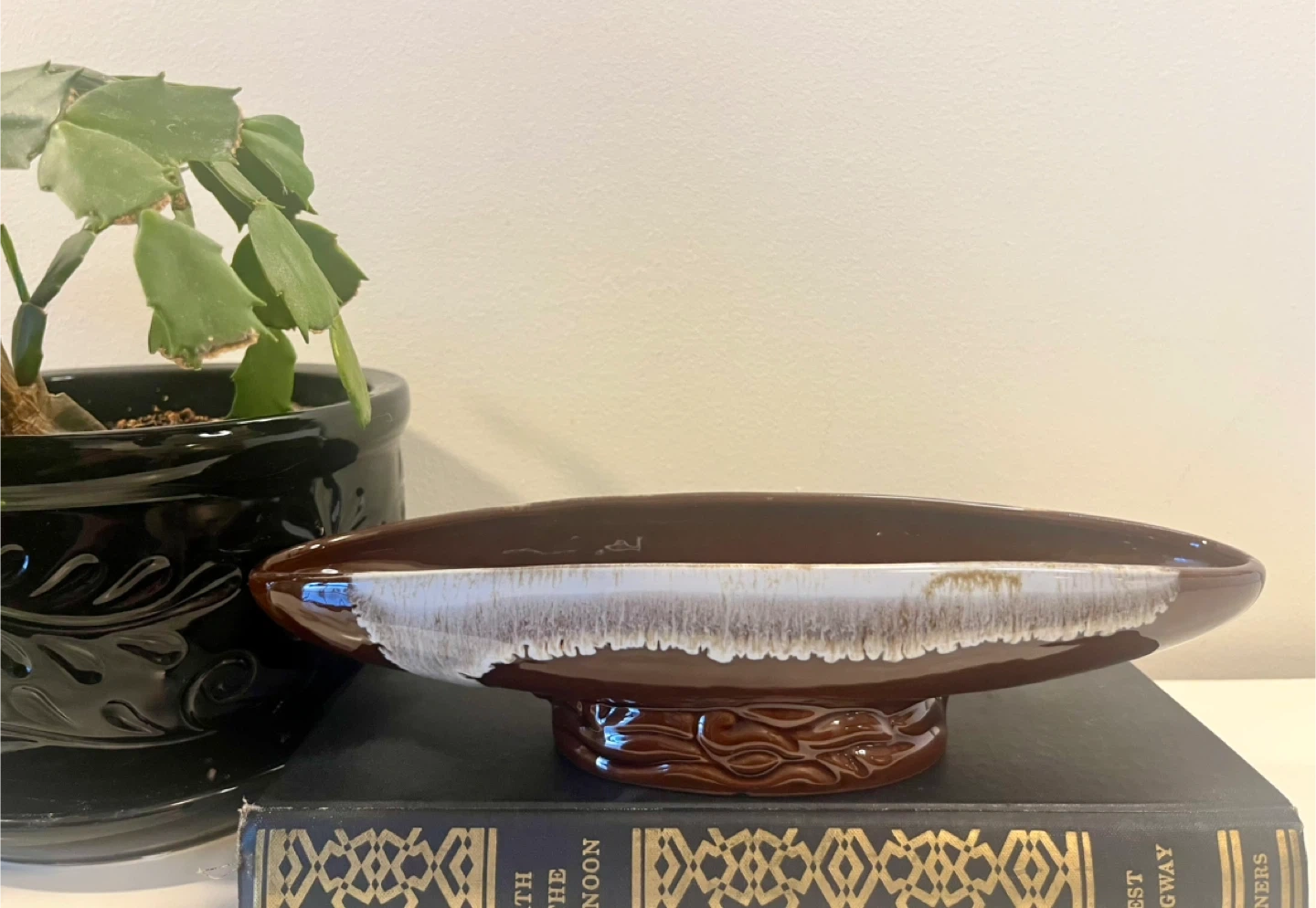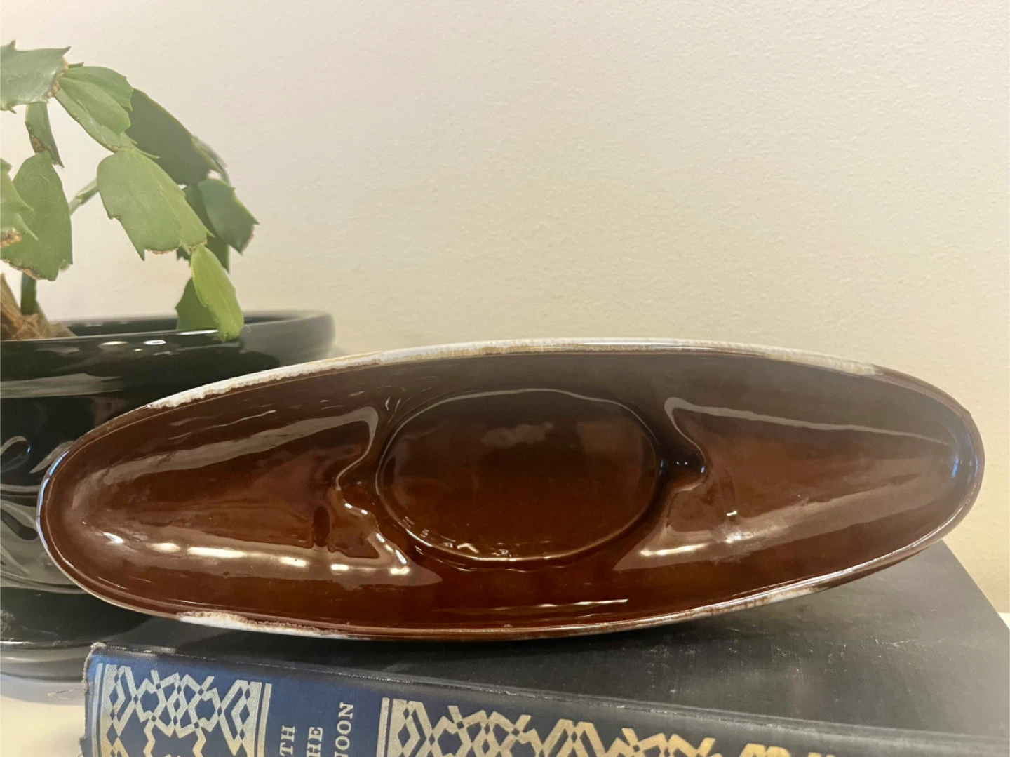 Vintage Brown Drip Glaze Boat Dish