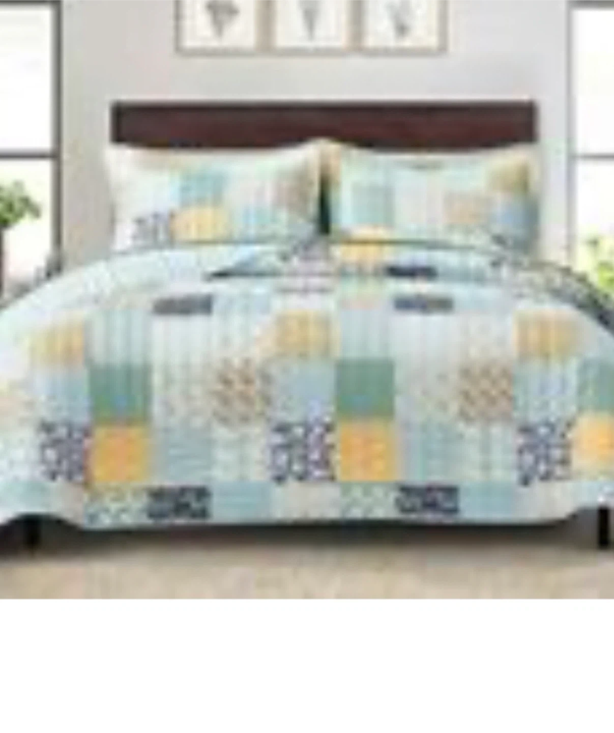 Cozy up your bedroom with this lovely patchwork quilt set! The colours are soft and calming, perfect for creating a relaxing atmosphere in your home. It's in great condition and ready to add a touch of charm to your space