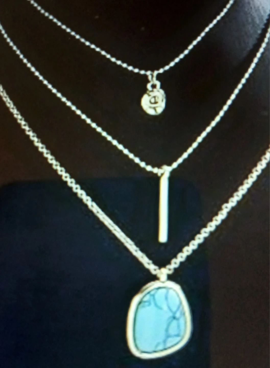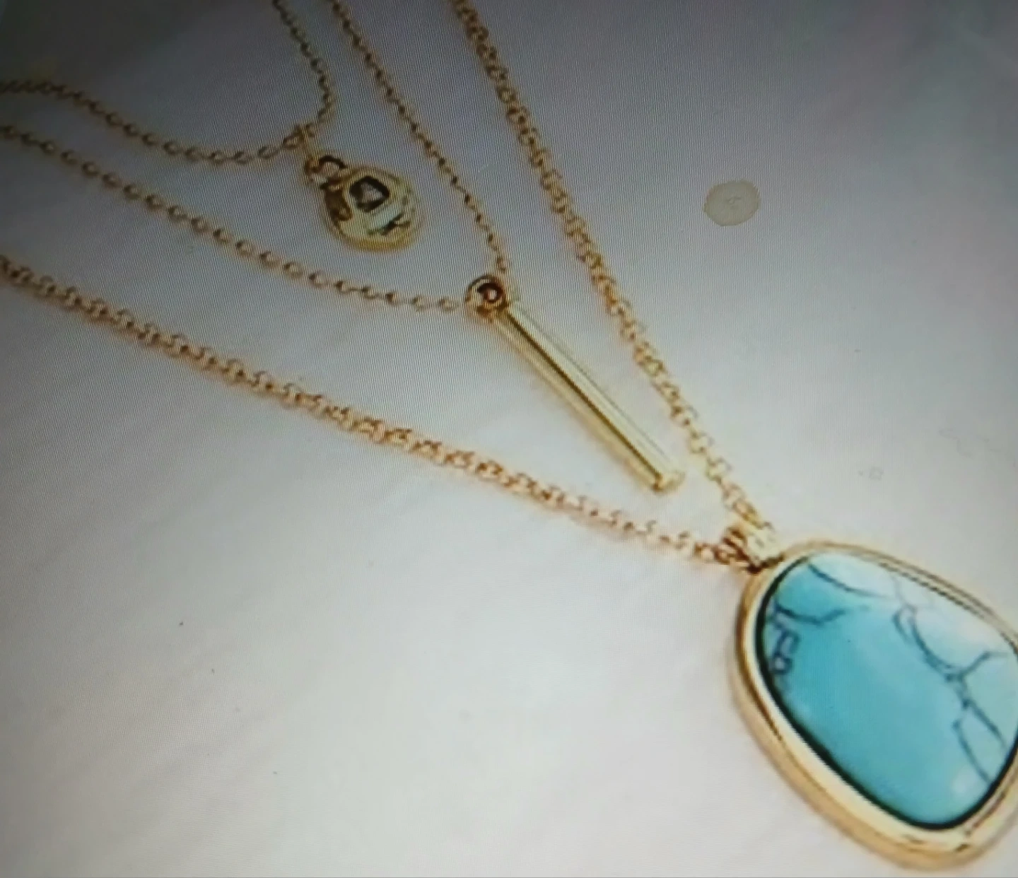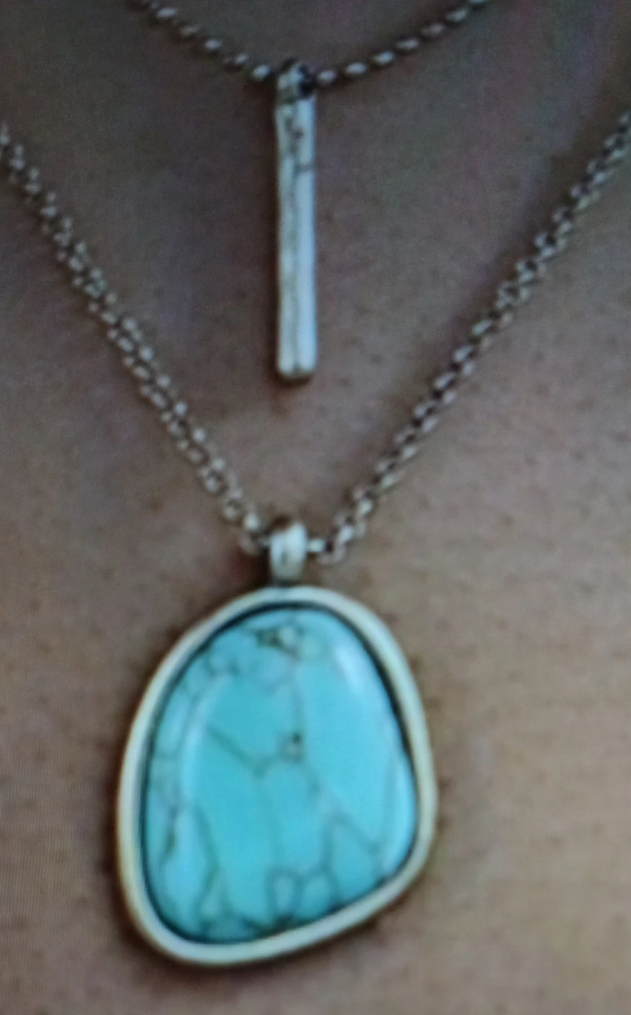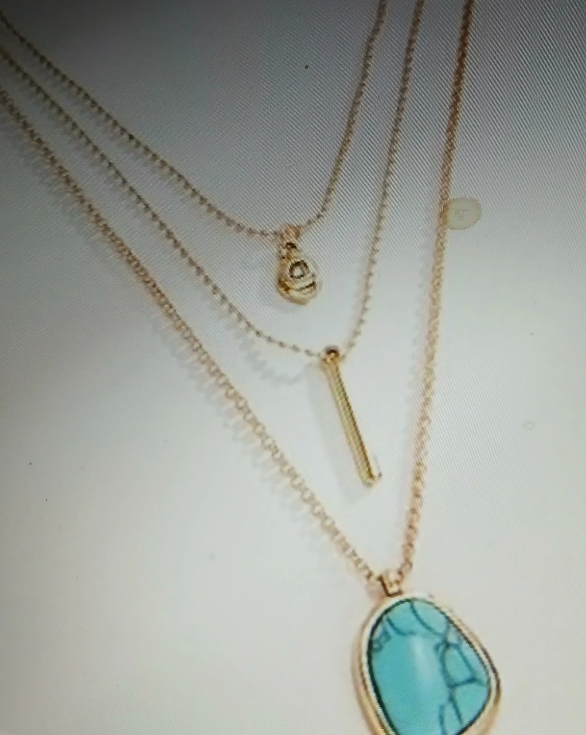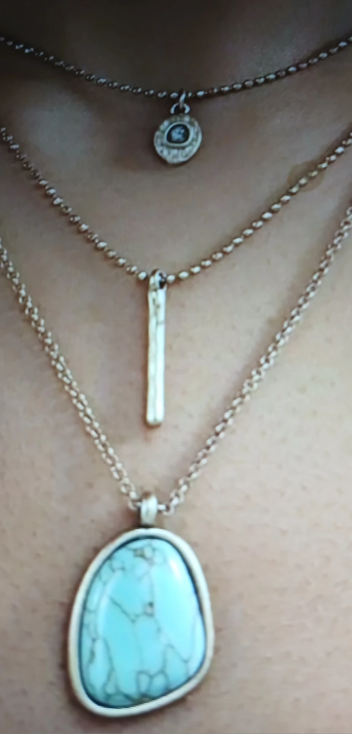 This is a beautiful layered gold necklace with a turquoise pendant! It's in great condition and would be a lovely addition to any outfit