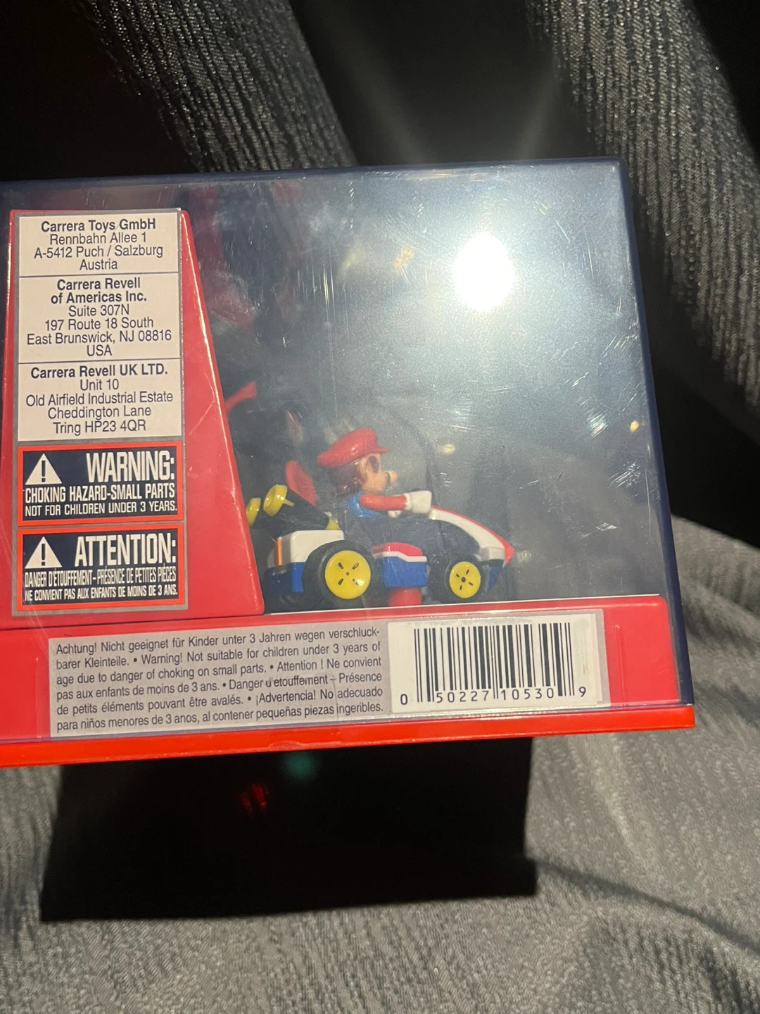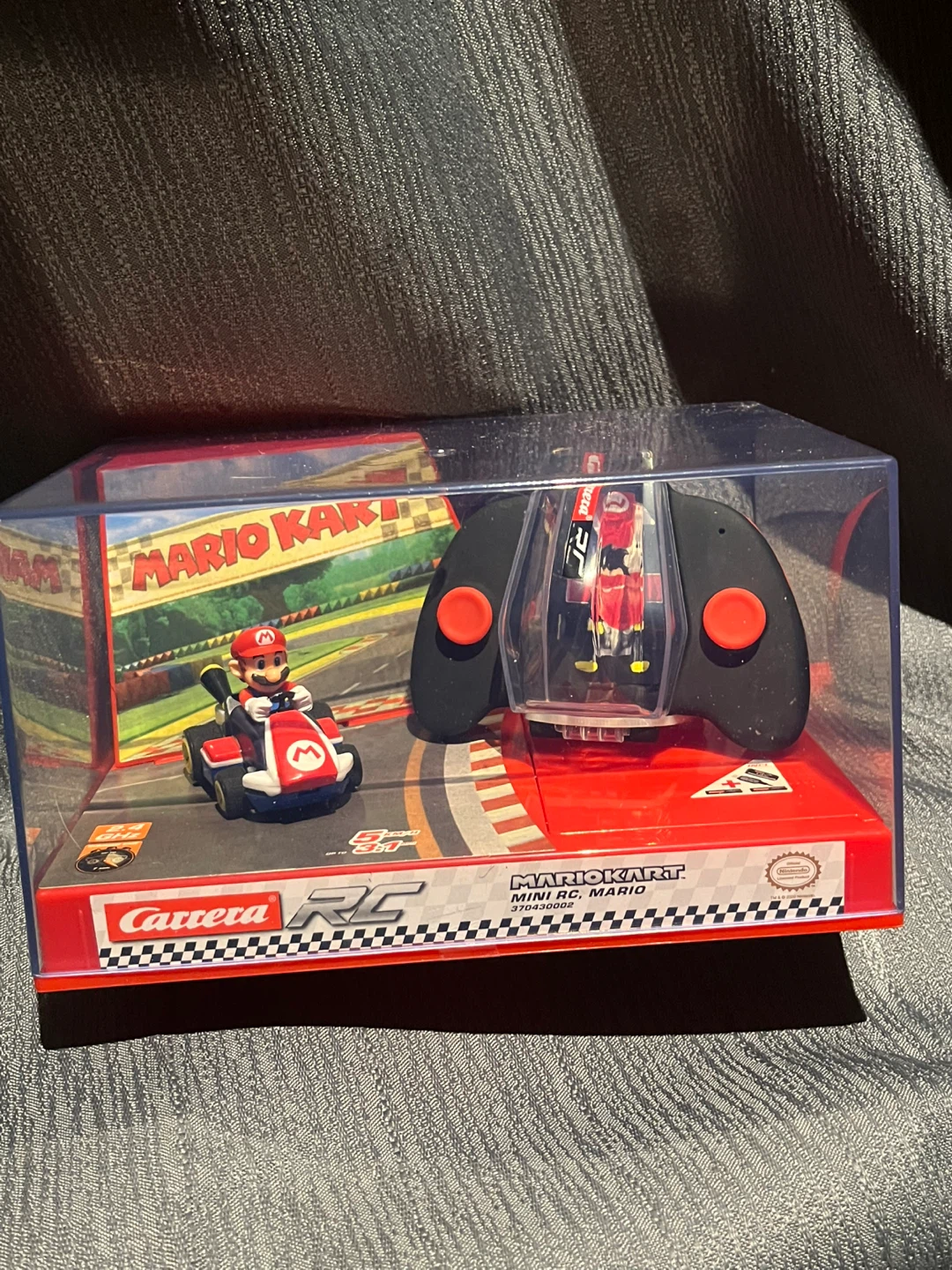 Selling a brand new Carrera RC Mario Kart Mini RC car featuring Mario! It's still in its original packaging. This cool little RC car is ready to run 🏃 It also comes with a USB turbo charger for easy charging