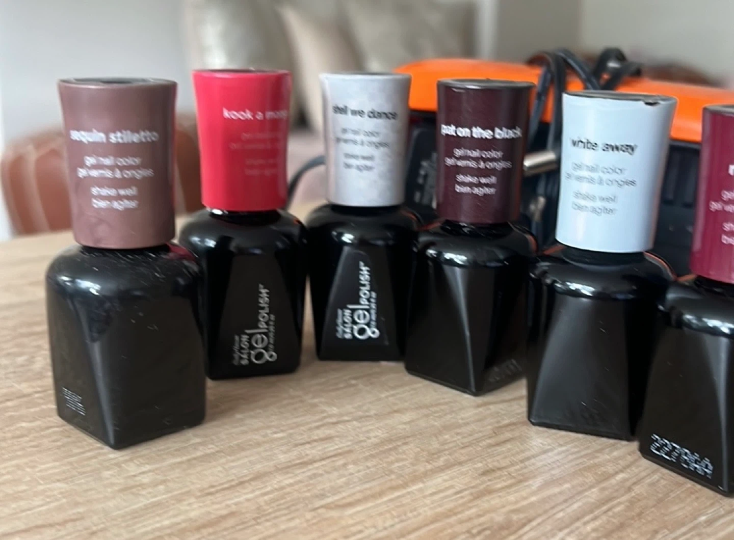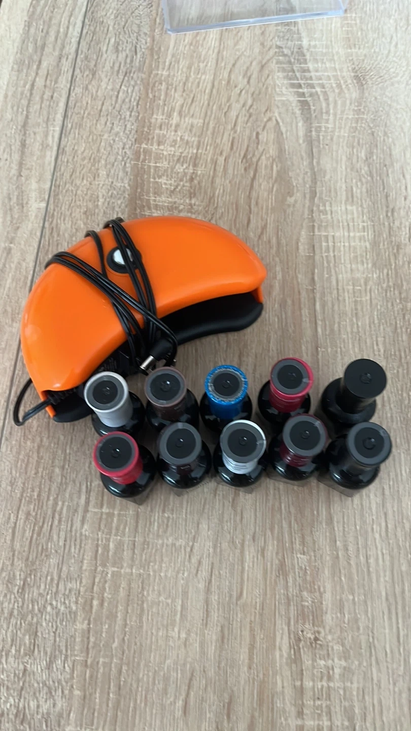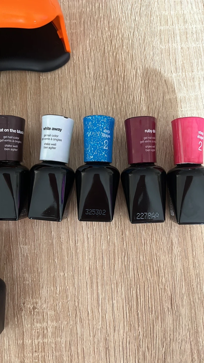 Selling a set of Salon Gel Polish nail colors! Includes a variety of shades to suit any style. Perfect for creating salon-quality manicures at home. This kit includes the LED lamp, the power, cord base and topcoat plus a variety of colors.!