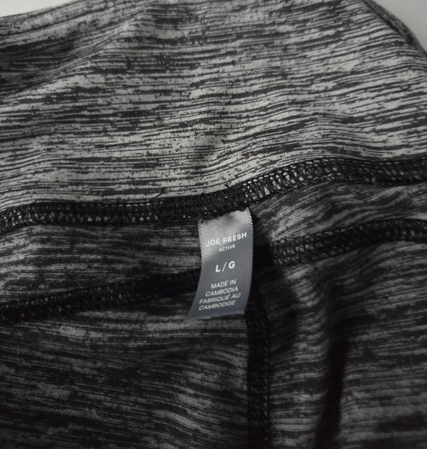 FREE a pair of Joe Fresh Active leggings in size L/G. They're in great condition and feature a stylish grey and black heathered pattern. Perfect for workouts or just lounging around!
