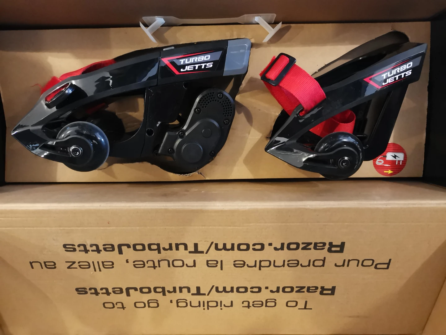 Selling a pair of Razor Turbo Jetts electric heel wheels. These are super fun and a great way to get around! They come in the original box.