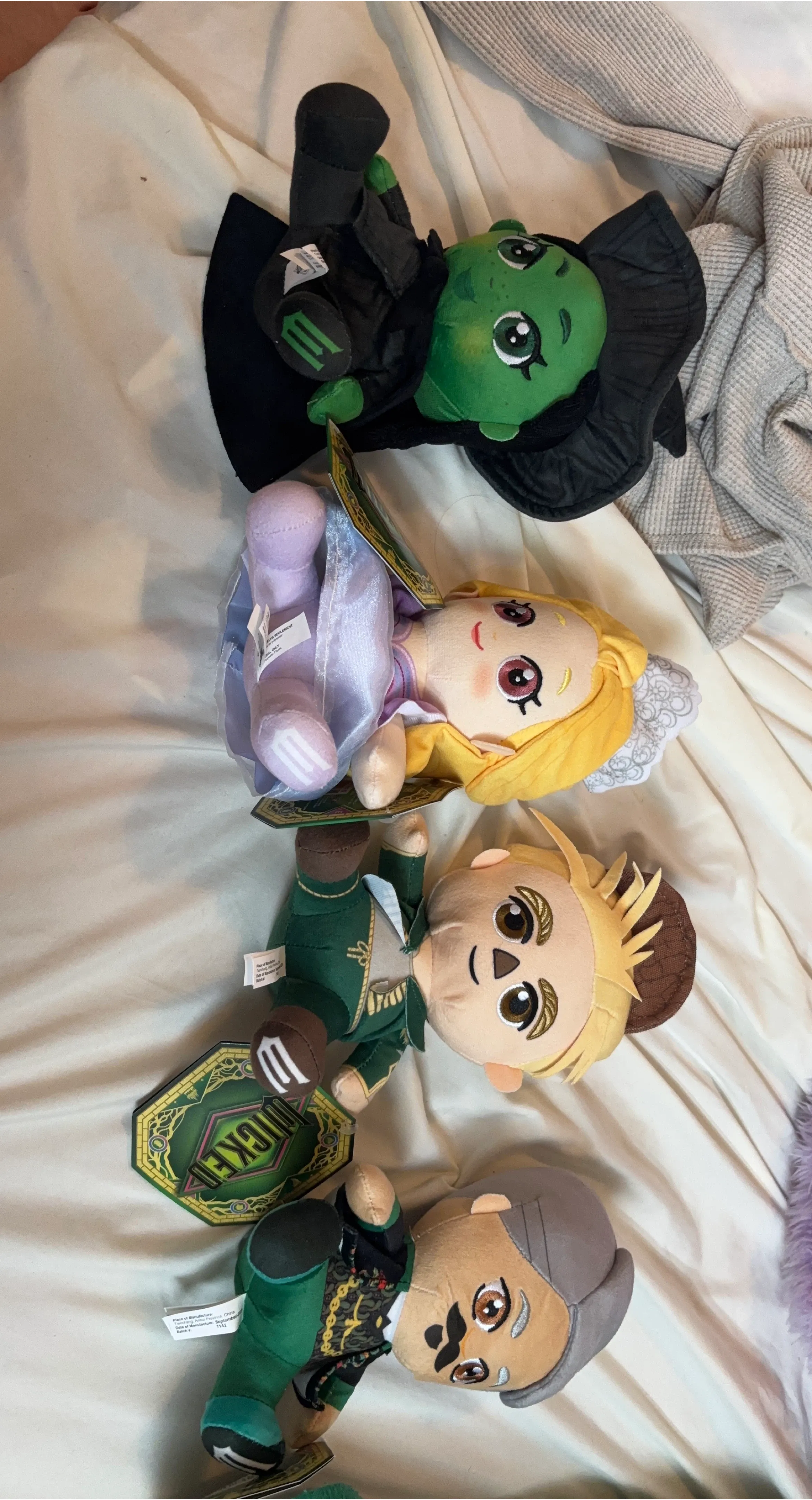 Selling a set of plush dolls from Wicked the Musical! Includes Elphaba, Glinda, Fiyero, and the Wizard. These are in great condition and ready for a new fan to enjoy!