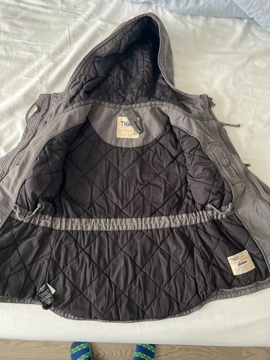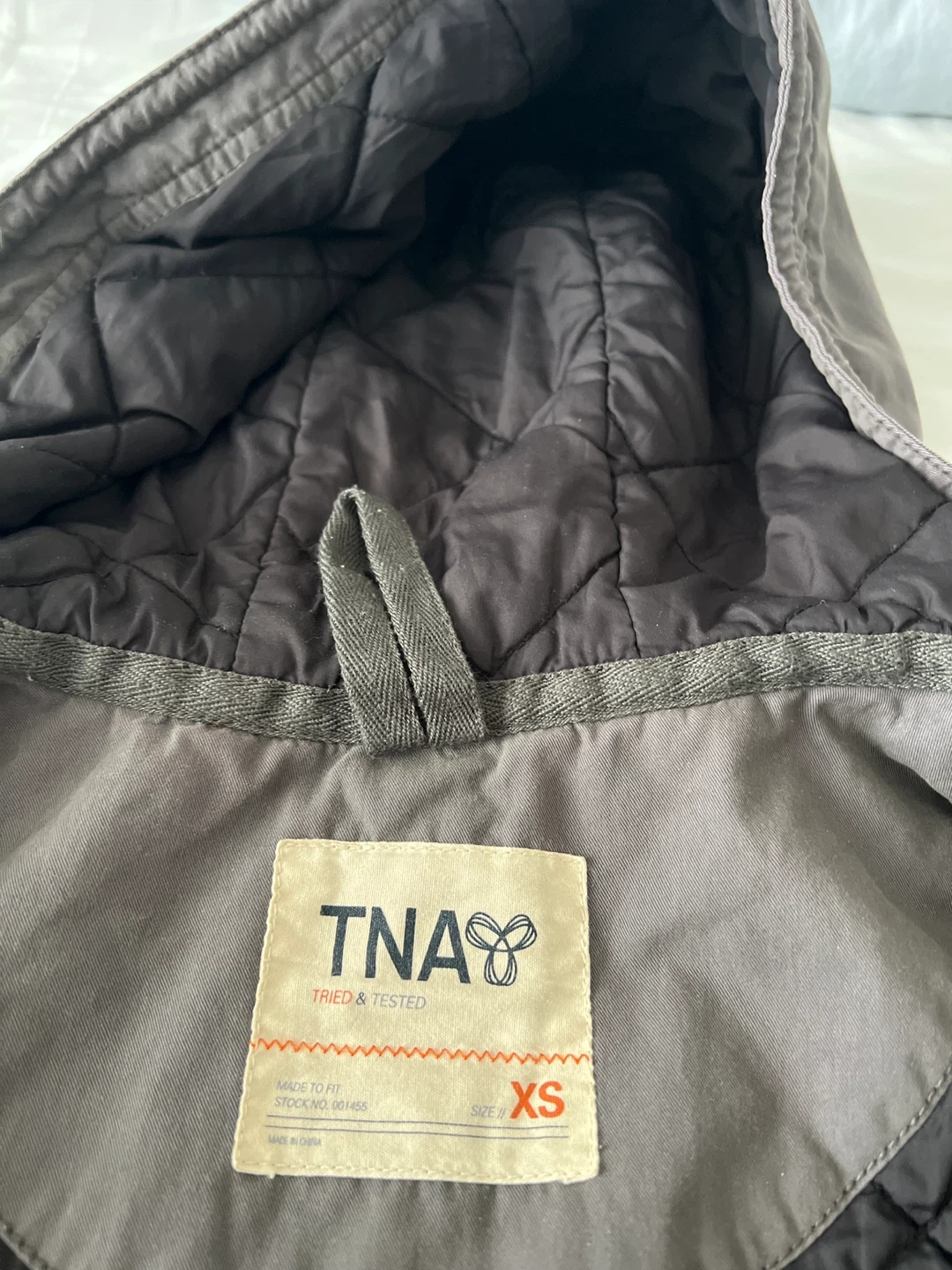 TNA Platoon jacket in size XS! It's a stylish and comfortable jacket perfect for cooler weather. The jacket is in good condition and ready for a new owner!