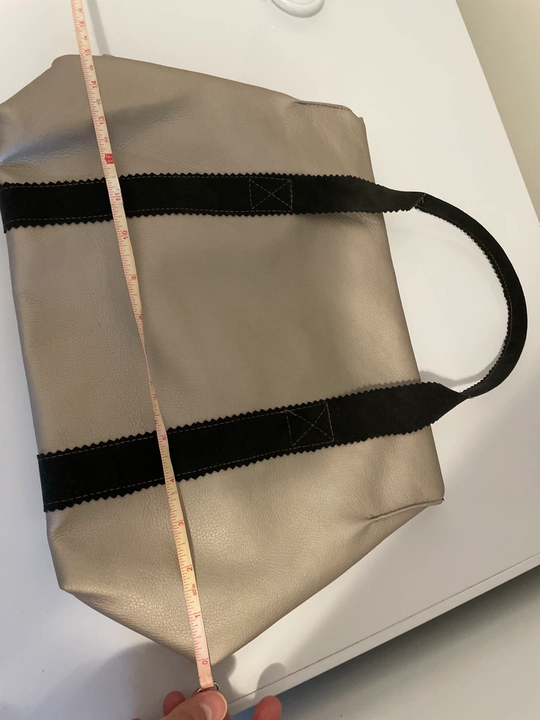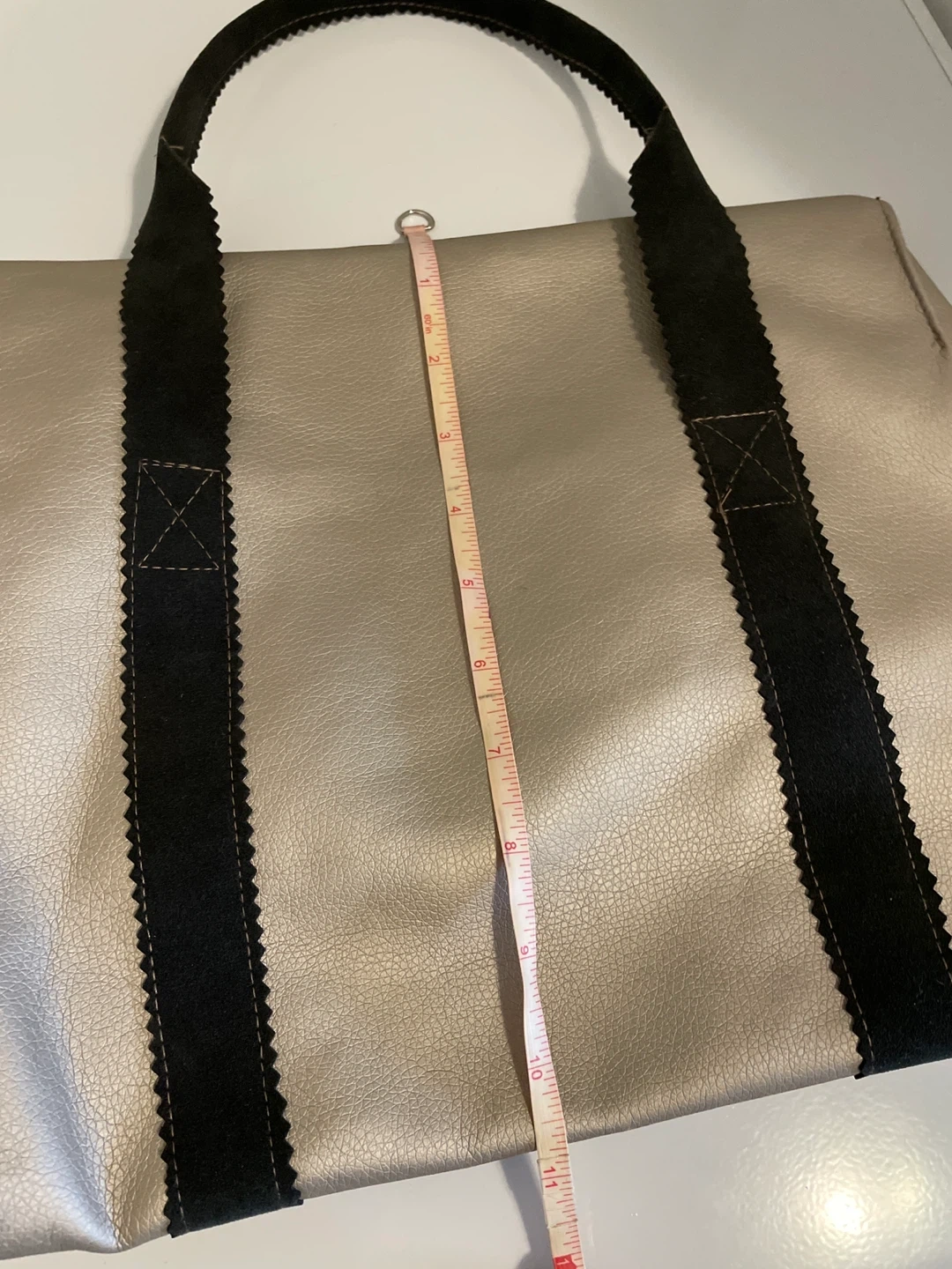 Silver Tote Bag with Black Straps