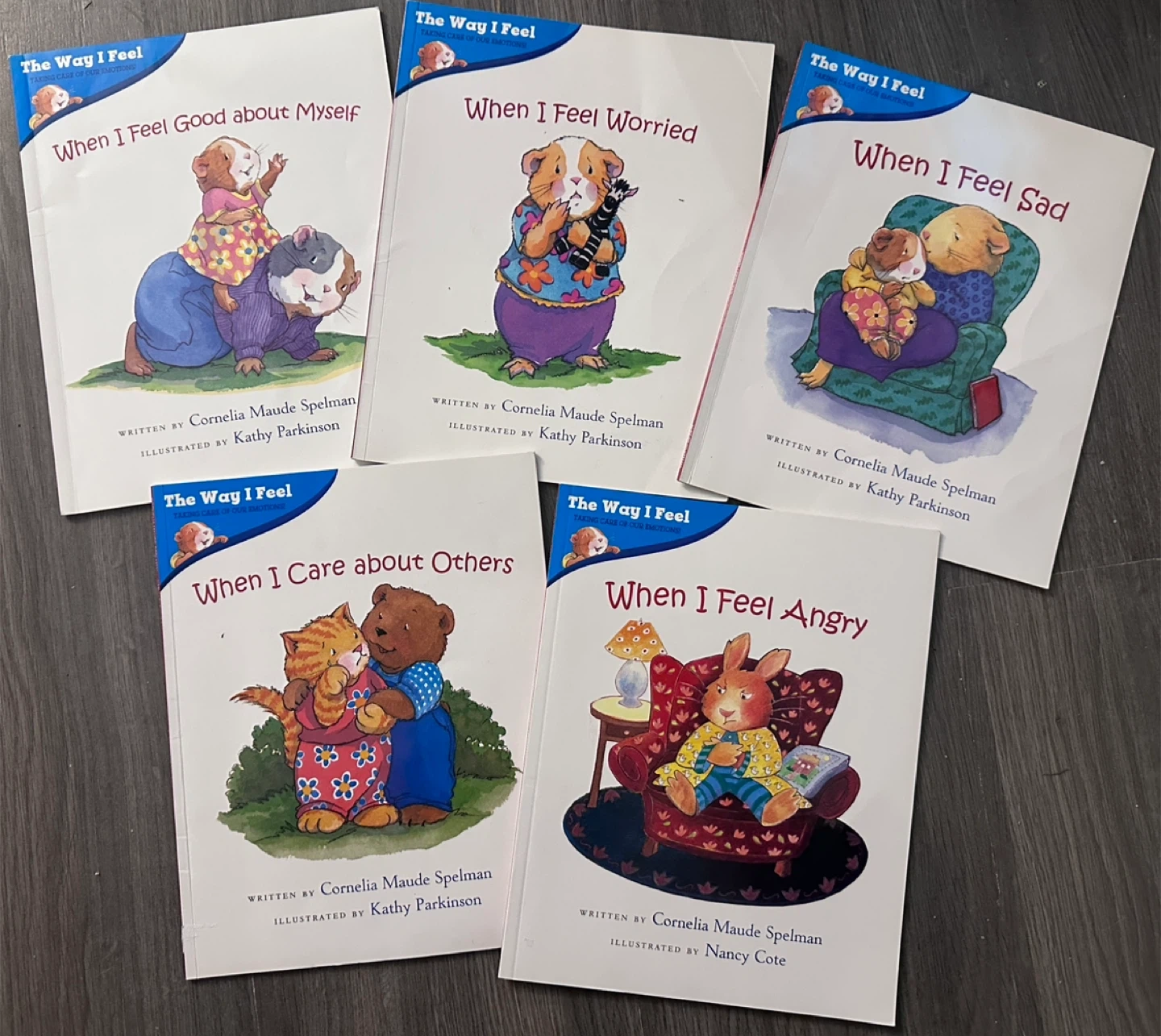 Selling a set of 'The Way I Feel' books by Cornelia Maude Spelman. These books help kids understand their emotions in a gentle way. Includes titles like 'When I Feel Good about Myself,' 'When I Feel Worried,' 'When I Feel Sad,' 'When I Care about Others,' and 'When I Feel Angry'