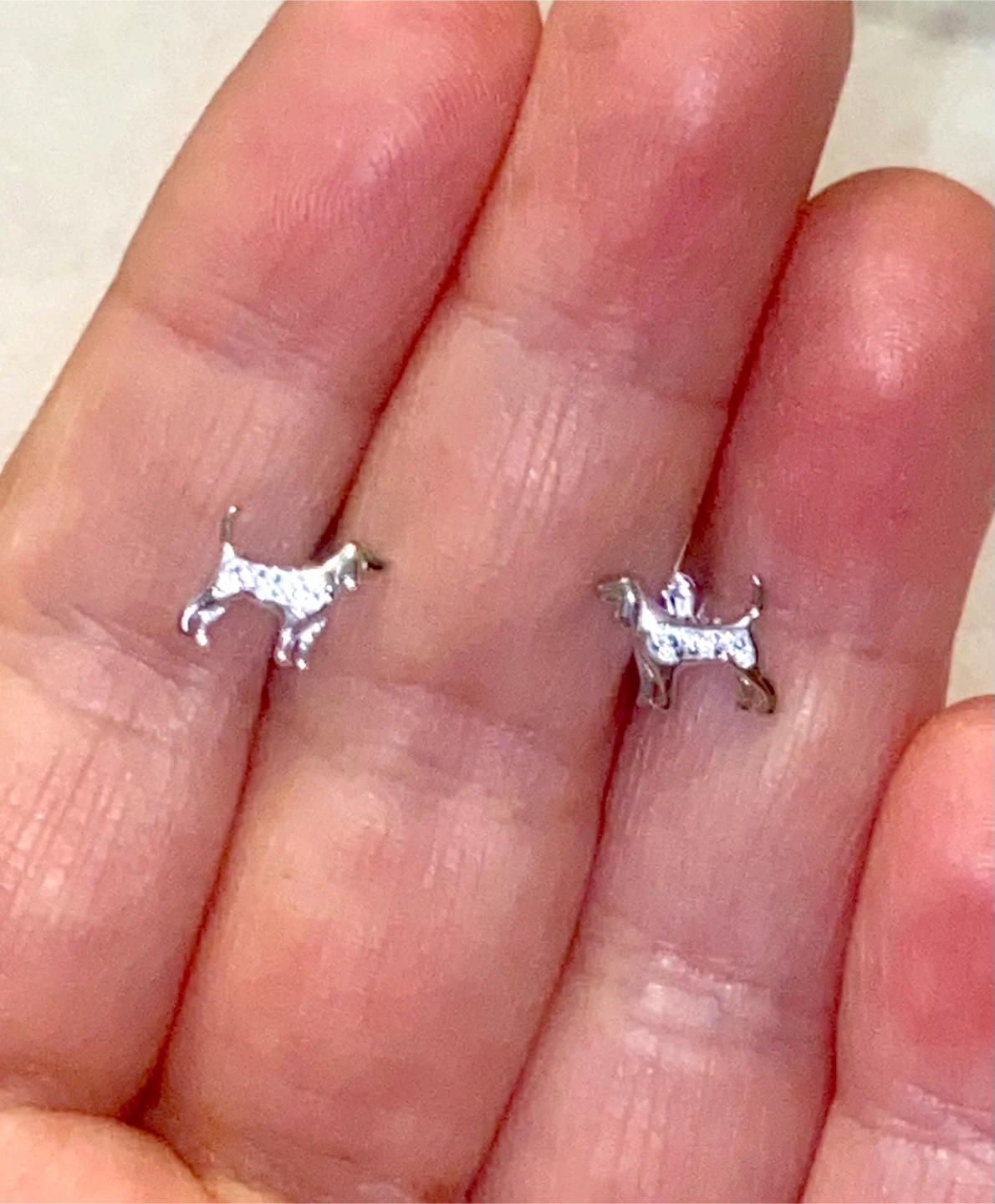 Cute dog-shaped stud earrings in a silver tone. Perfect for any dog lover!