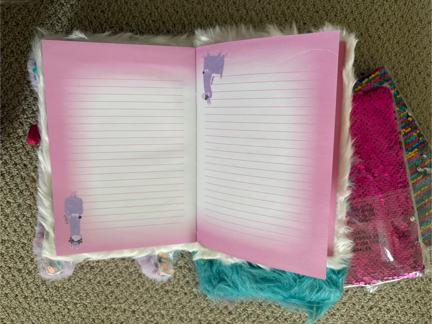 Check out these fun and unique journals! They're perfect for kids or anyone who loves a little sparkle and fuzz. There's a sequin journal, a rainbow fuzzy journal, a white fuzzy journal, and a cute purple plush journal. The inside pages are lined and ready for writing or drawing!
