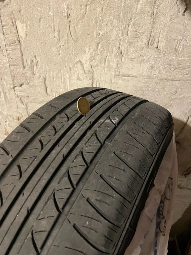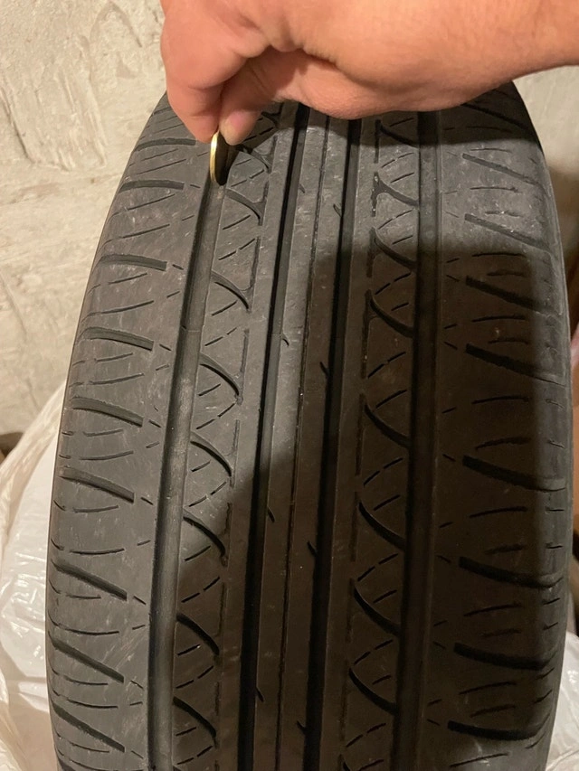 For sale: Complete set of 4 used 205/60R15 tires mounted on 15” steel rims (5x100 bolt pattern common for Honda Civic, Toyota Corolla, Hyundai Elantra, etc.—confirm your fitment!). Tires are all-season with approx. 6/32” tread depth (60% remaining, no plugs/cuts), even wear, dated 2022. Rims in solid shape: minor scuffs, no bends, hubcaps included. Perfect summer swap—balanced and ready to mount. Located in Markham. Pickup only, cash preferred. Serious buyers first—text for pics/inspection. No holds, first come!