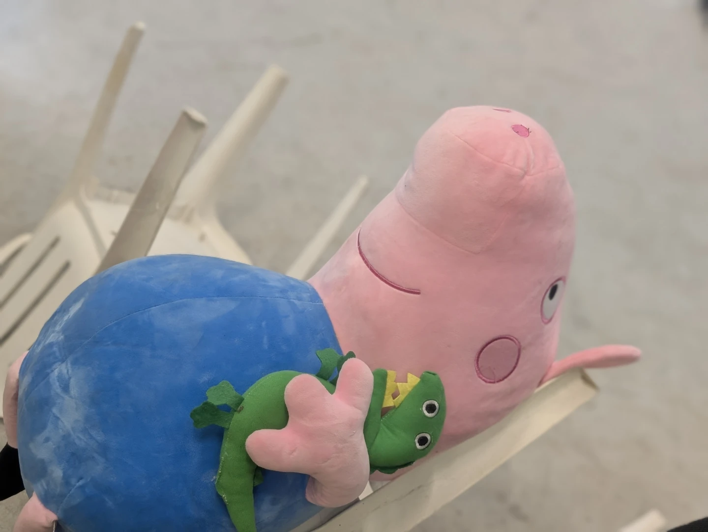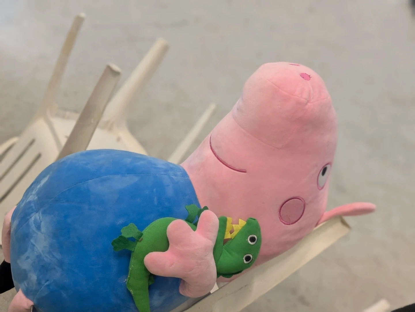 Selling a cute Peppa Pig plush toy! It's in good condition and comes with a little green dinosaur friend. Perfect for any Peppa Pig fan! Be warned it's in perfect condition but so very large