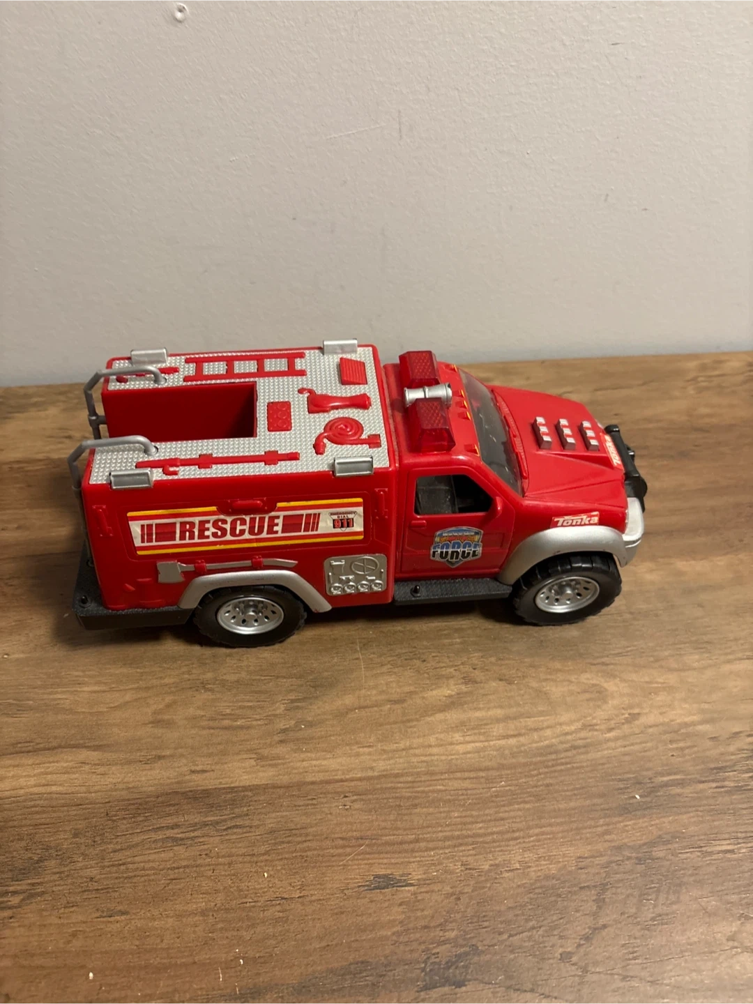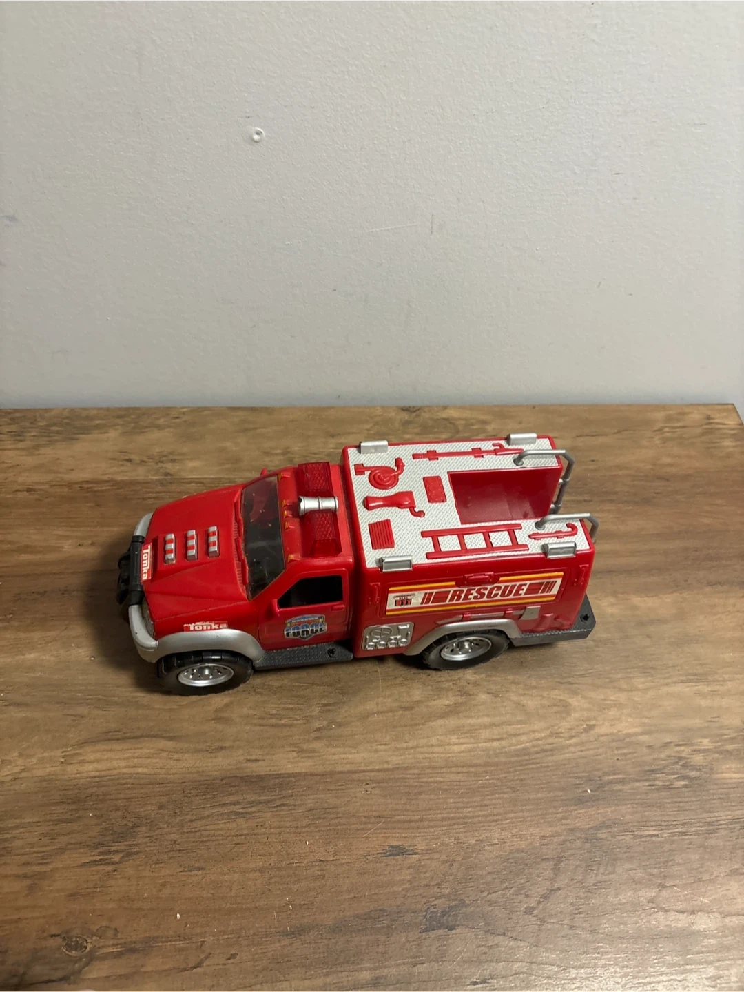 Selling a red Tonka Rescue Fire Truck. Great for kids who love playing with toy vehicles. It is in good condition and ready for a new home!