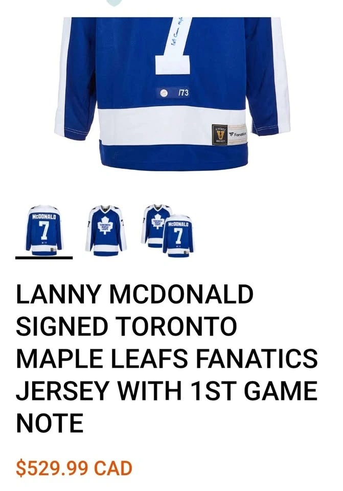 Official signed Lanny McDonald Jersey vintage fantastics. $400 PRICE DROP $300 or Best Offer. Also willing to trade for signed jersey of current Leafs players. Porch pickup by 9th line and steeles.
