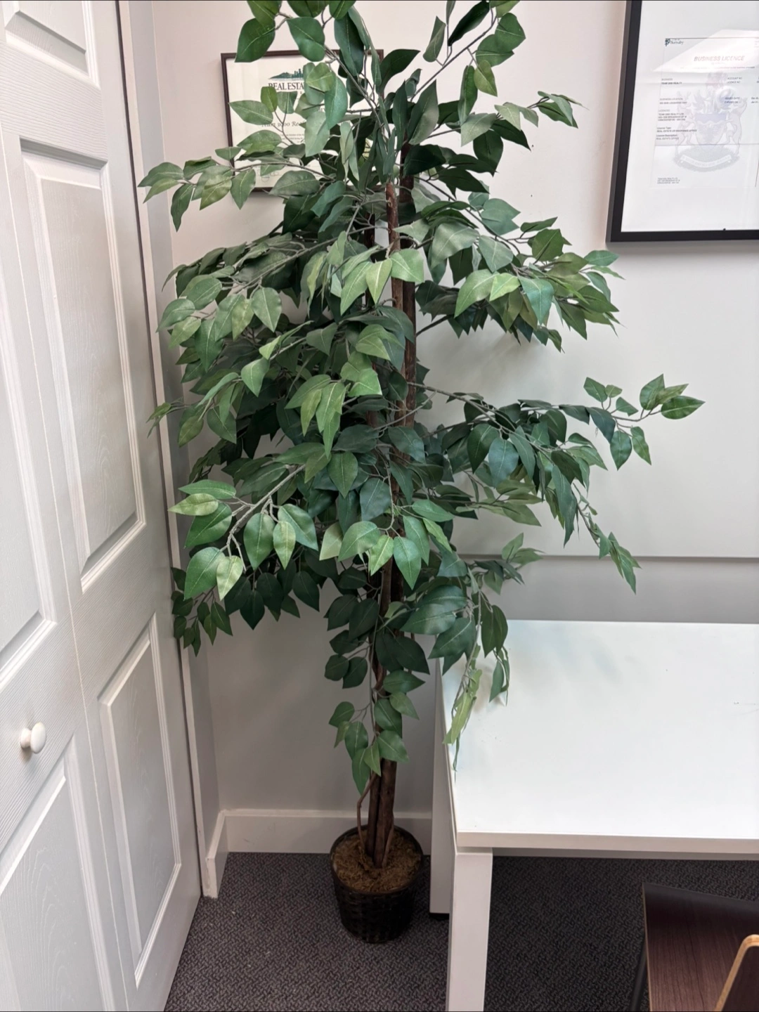 Selling a faux ficus tree! It's in great condition and would look great in any room. It's a nice way to add some greenery to your space without the hassle of taking care of a real plant