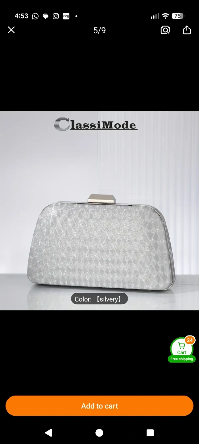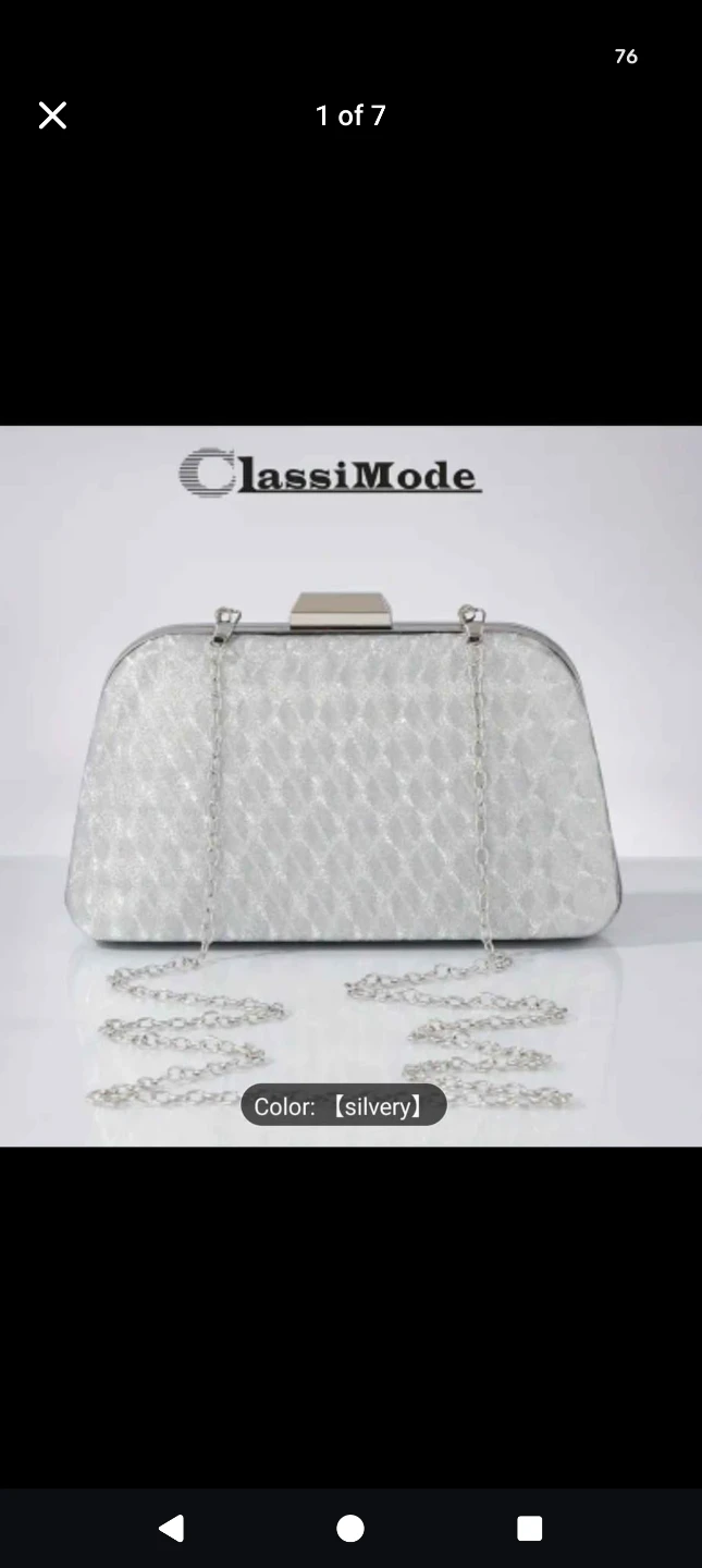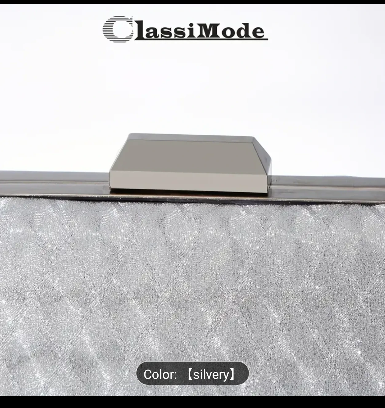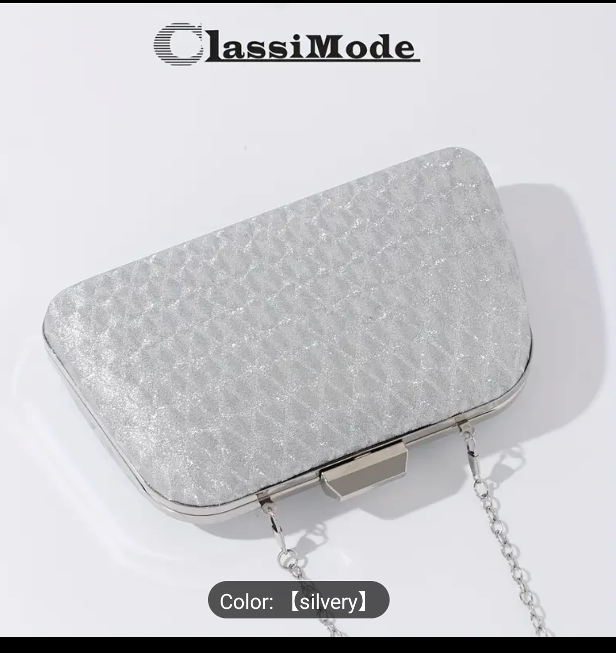 Here's a ClassiMode clutch in a lovely silver colour! It's perfect for evenings out or special occasions. It's a stylish and compact accessory to complete your look.