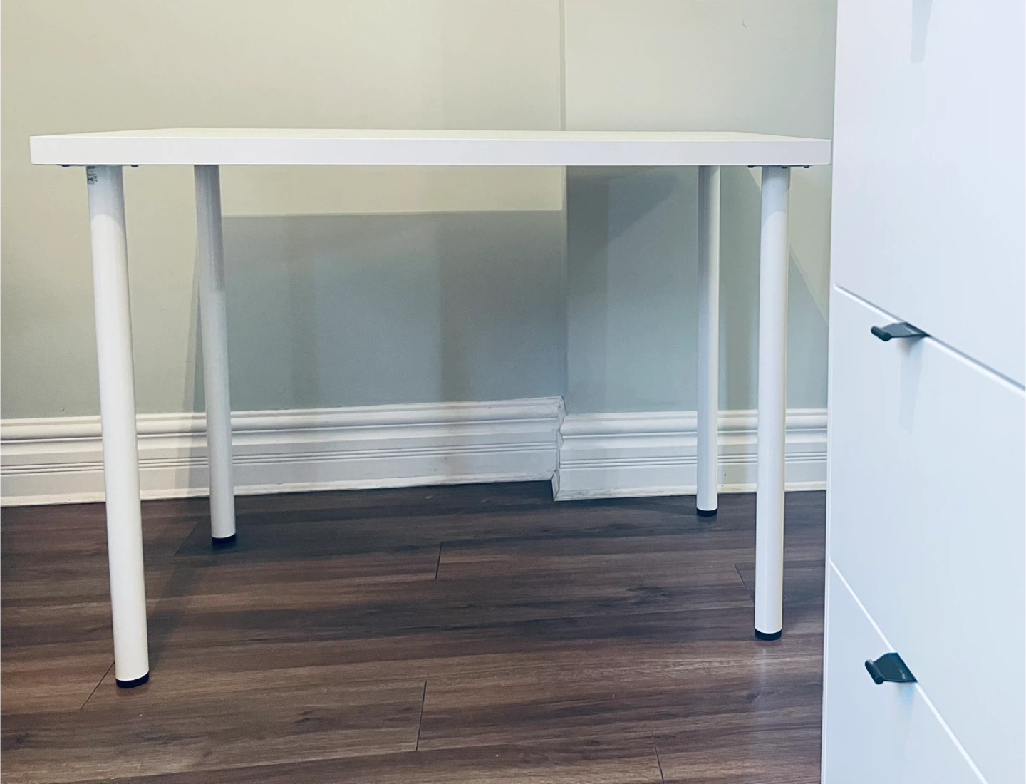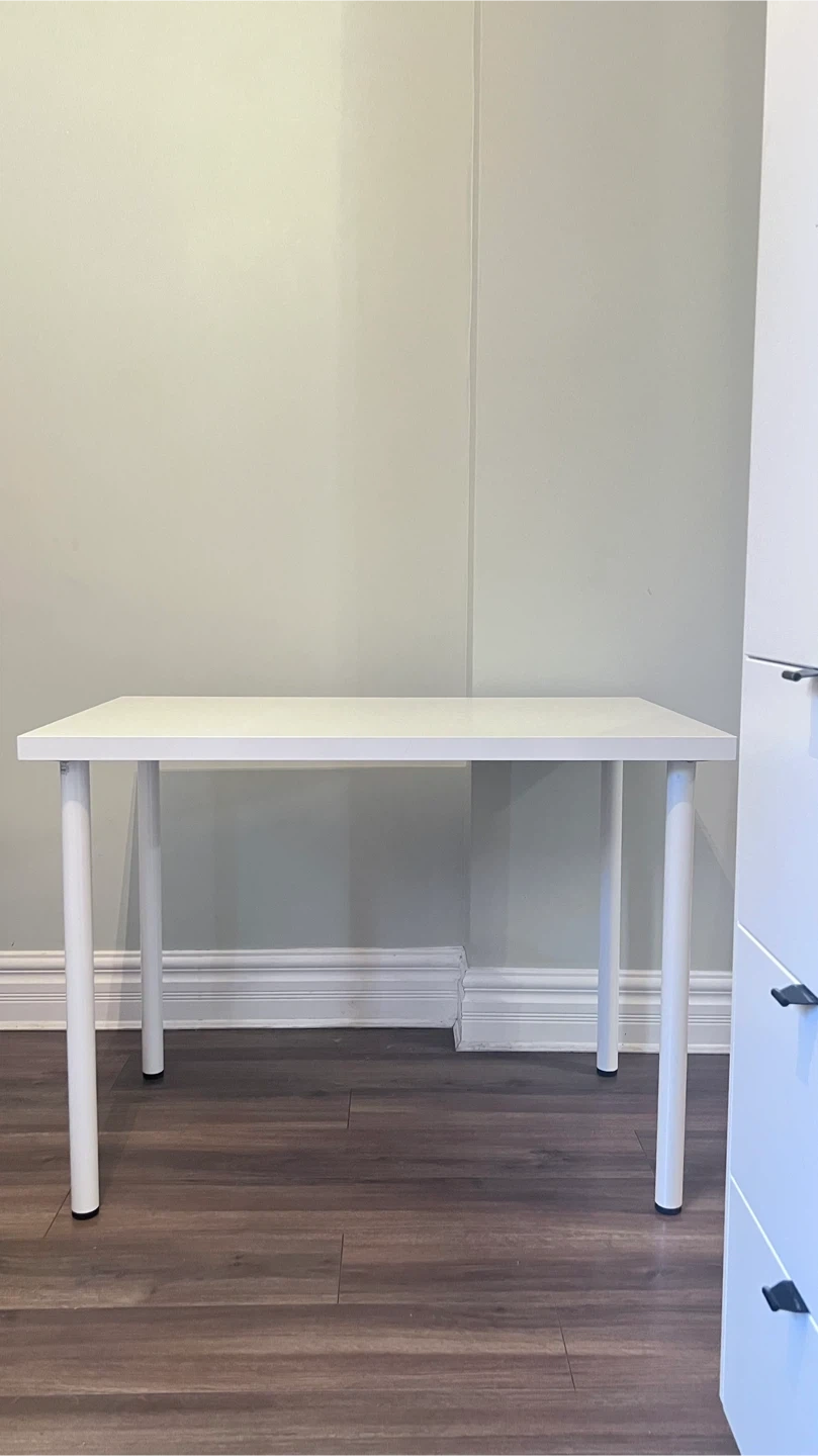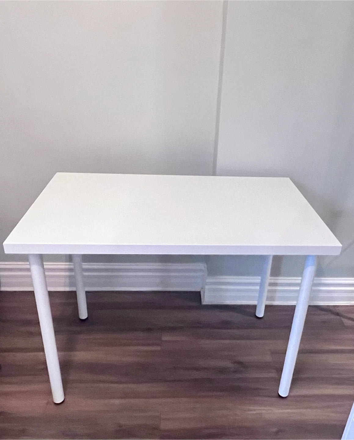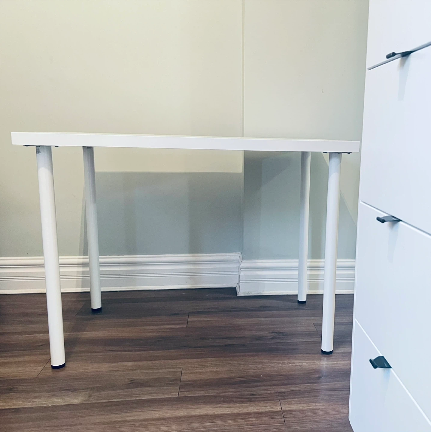 Selling an IKEA LAGKAPTEN / ADILS desk in white. It's in good shape, lightweight and easy to move around. The white metal legs come off easily, which makes it easy to transport.
