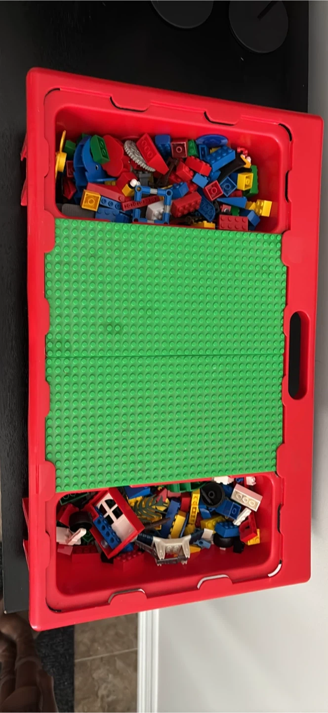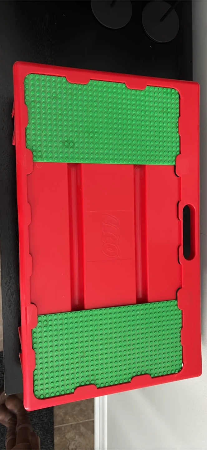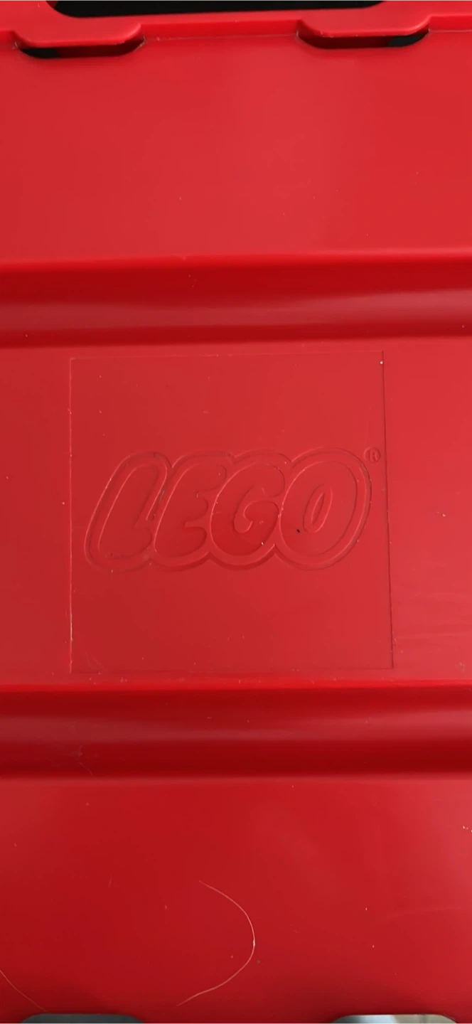Selling a LEGO red brick storage box! It's in good condition and perfect for keeping your LEGO bricks organized. The box is red with green accents and has the LEGO logo on it. It's a great way to store and transport your LEGO creations pick up Winston Churchill and Thomas Street no holes without deposit please thanks