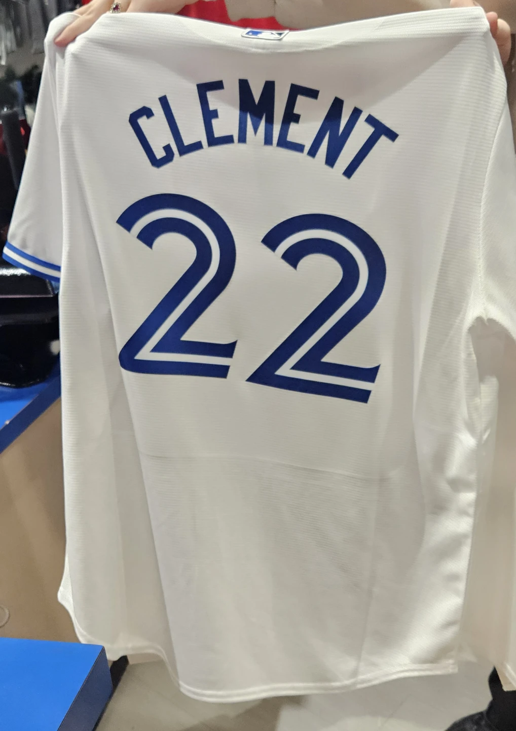 Selling a brand new with tags Toronto Blue Jays white jersey with the World Series patch,, customized with Clement 22 on the back. Size large. Purchased directly from the Jays Shop.