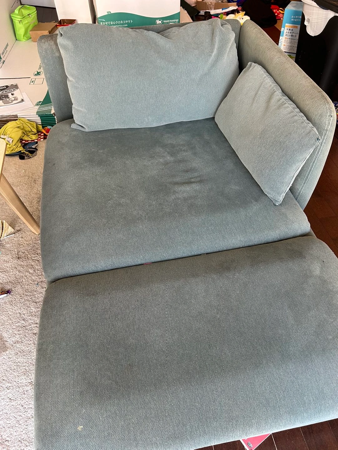 Ikea couch bought it for $580 2 years ago. The cover is washable. The cover can be changed by buying new cover. Pick up only. This colour is green which I couldn’t find on the website, but the couch is the one below.