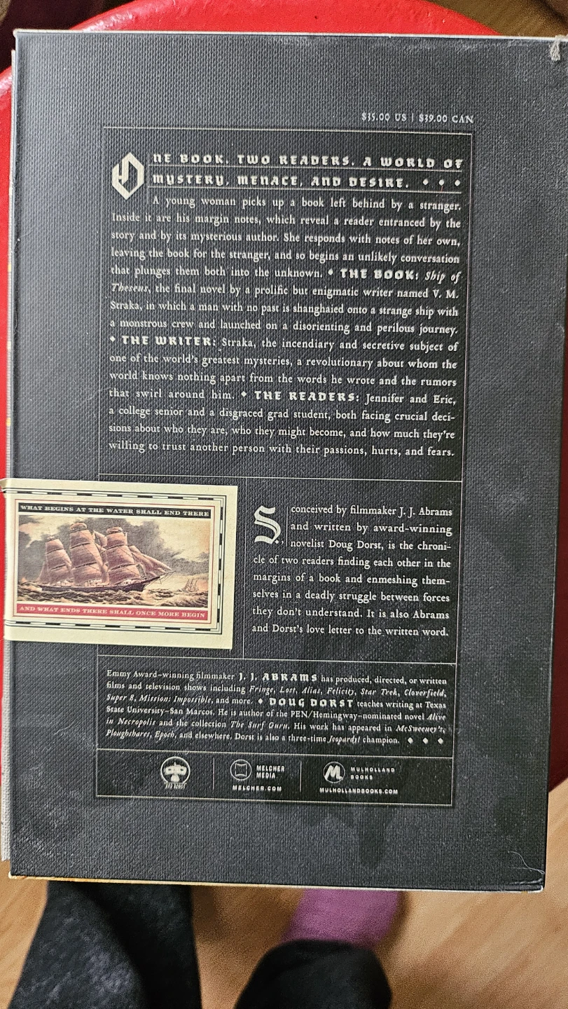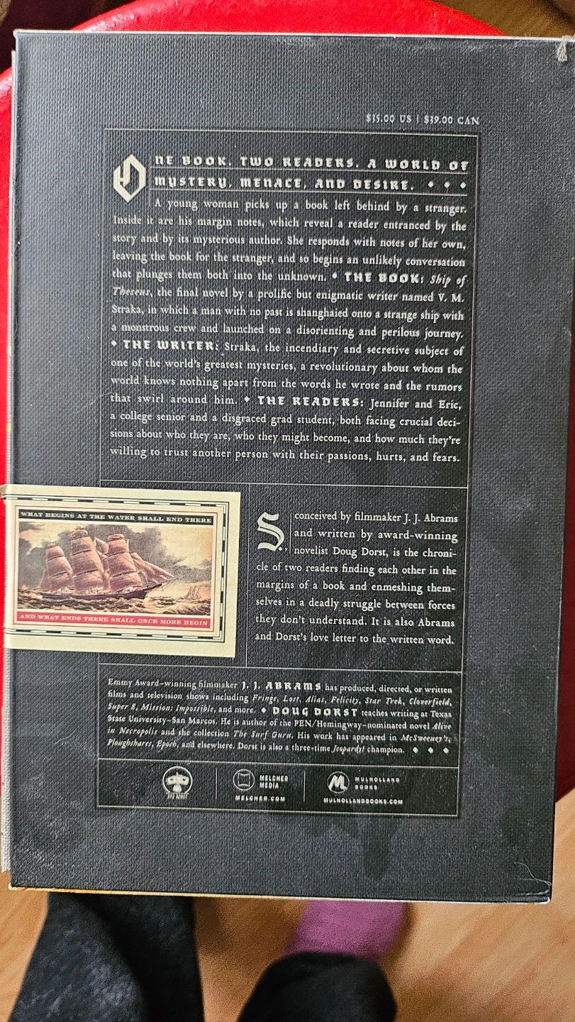 Selling a copy of Ship of Theseus by V.M. Straka. It's a novel with a unique format and intriguing story. Perfect for anyone who loves a good mystery! Available for pick-up near Oakwood Village.