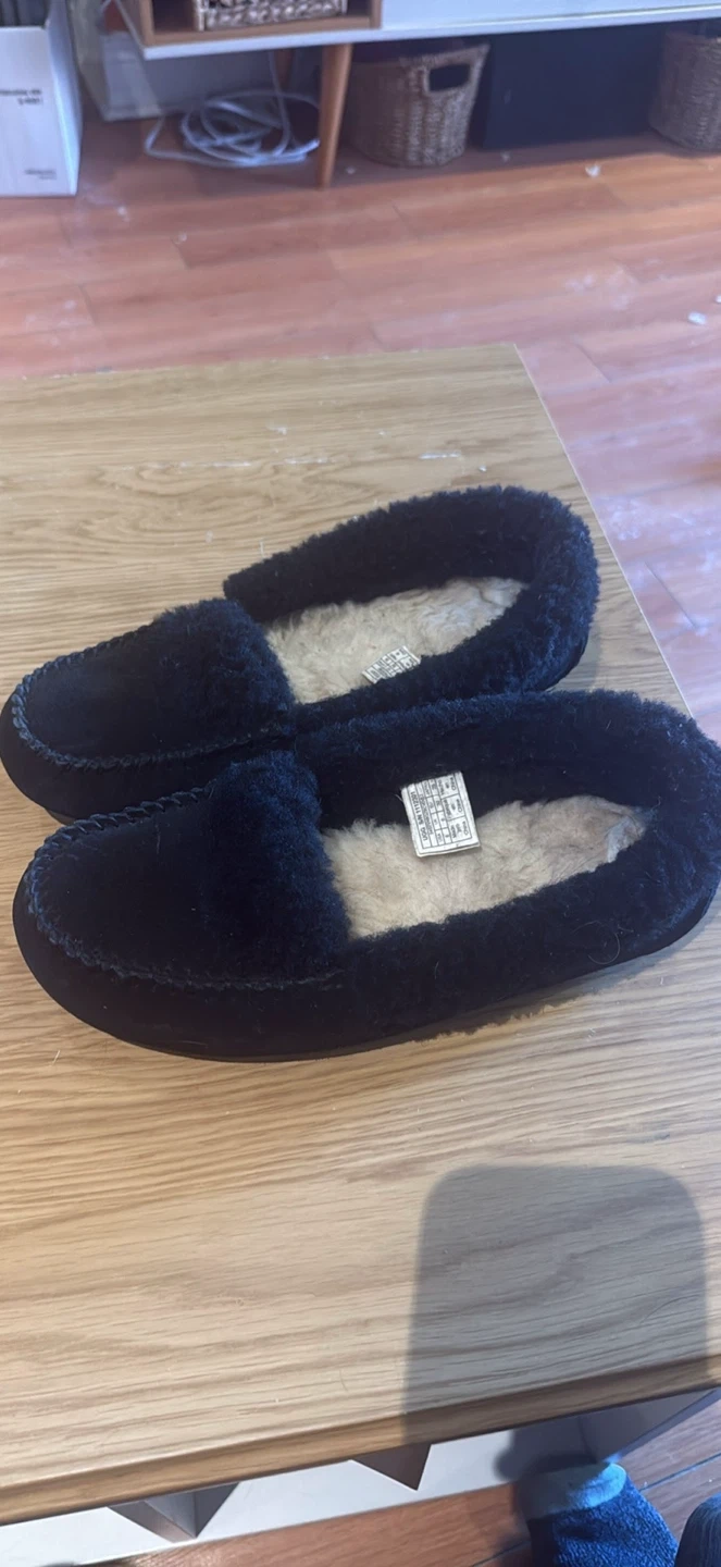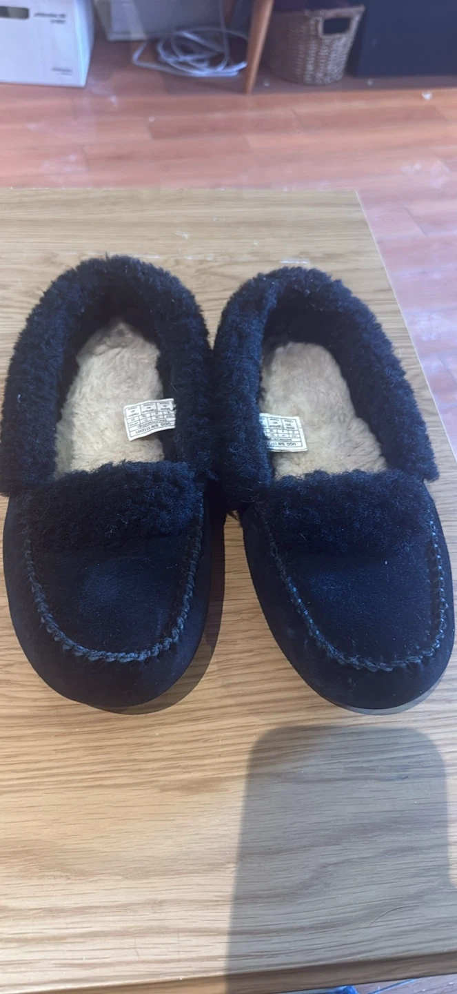 Selling a pair of UGG Ansley slippers in black. They are a women's size 8. They are in good condition and super comfy for wearing around the house!
