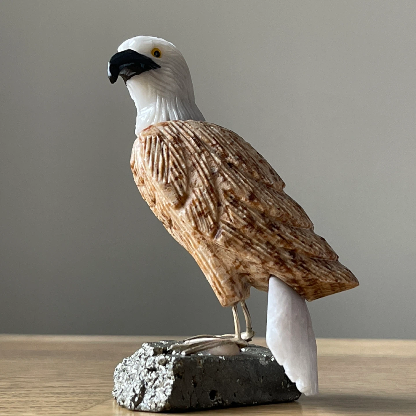Beautiful natural stone carving of a bald eagle.