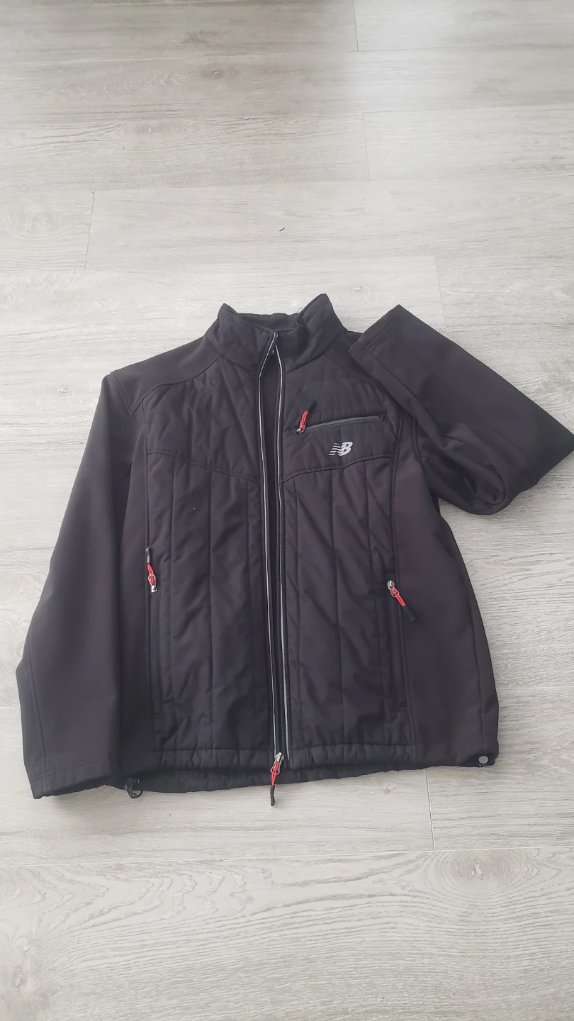 Here's a New Balance jacket in size medium! It's a sleek black colour and in great condition. Perfect for layering or wearing on its own during those cooler days.