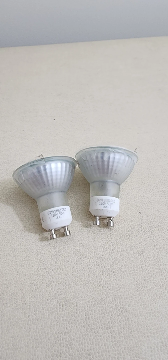 Selling two GU10 shielded light bulbs. They are 120V and 50W. Perfect for replacing burnt-out bulbs in your home or office