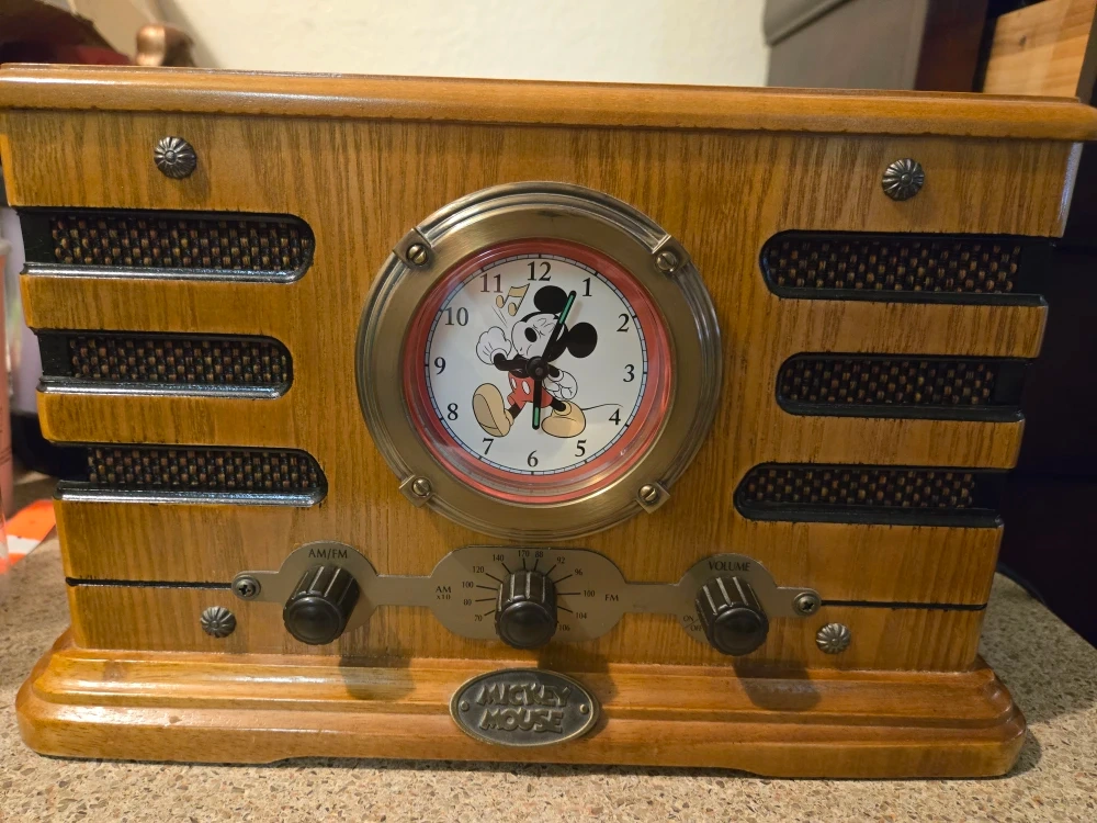 Selling a cute Mickey Mouse clock radio! It features an AM/FM radio and a clock with Mickey Mouse on the face. Great for a kid's room or any Disney collector!
