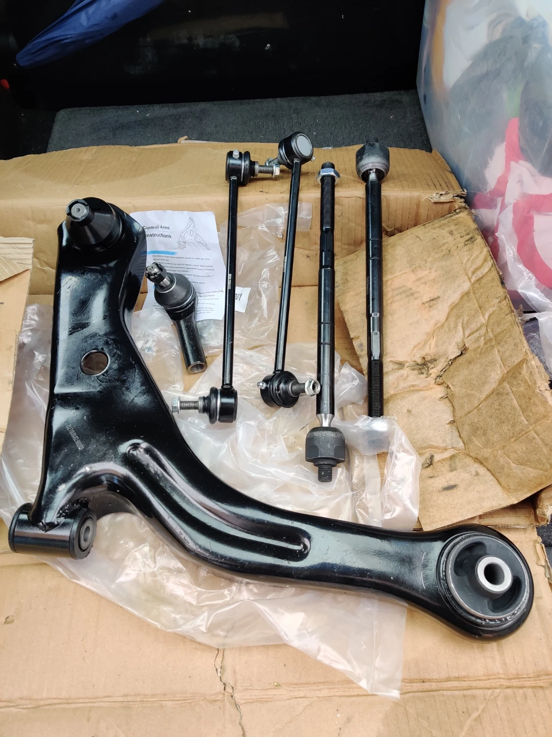 Selling a new car suspension control arm kit. It appears to include the control arm, sway bar links, and tie rod ends. Perfect for replacing worn suspension parts!