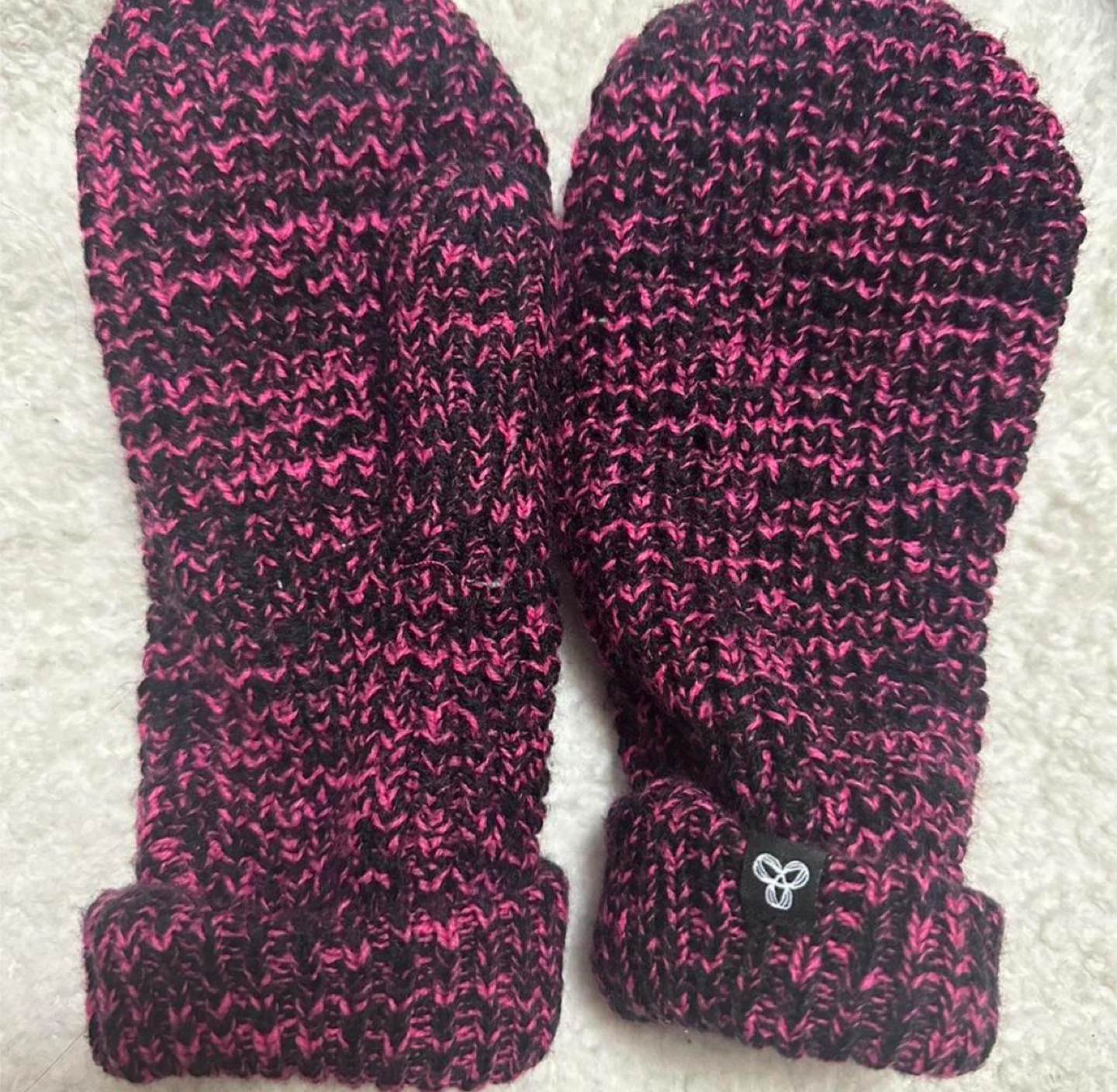 Keep your hands cozy with these TNA knit mittens! They feature a stylish pink and black pattern and are made with a blend of acrylic and polyester for warmth. Never worn!