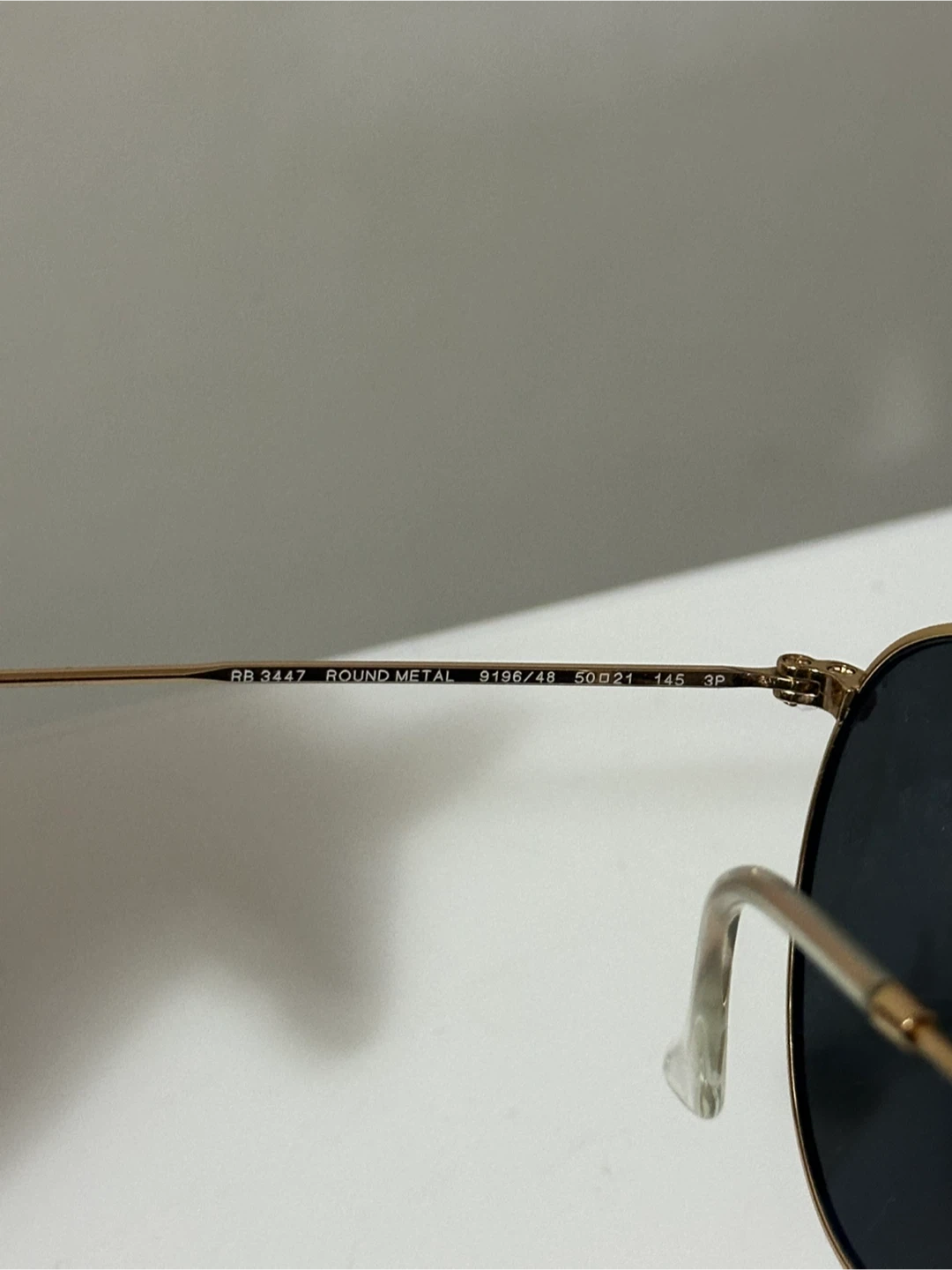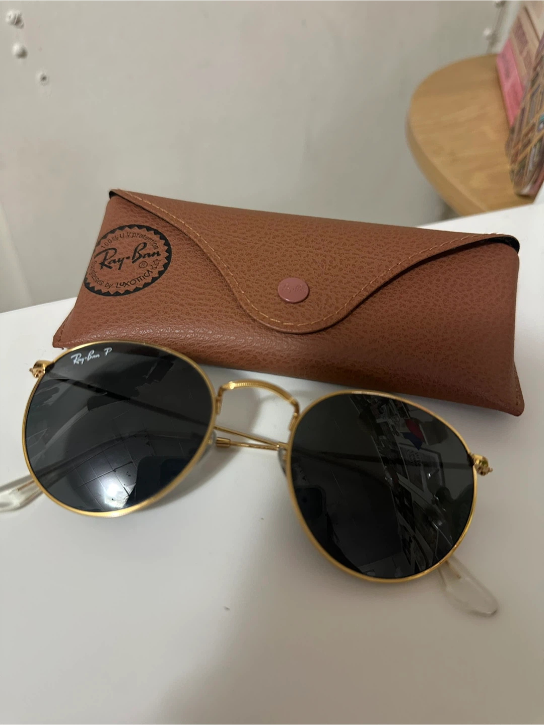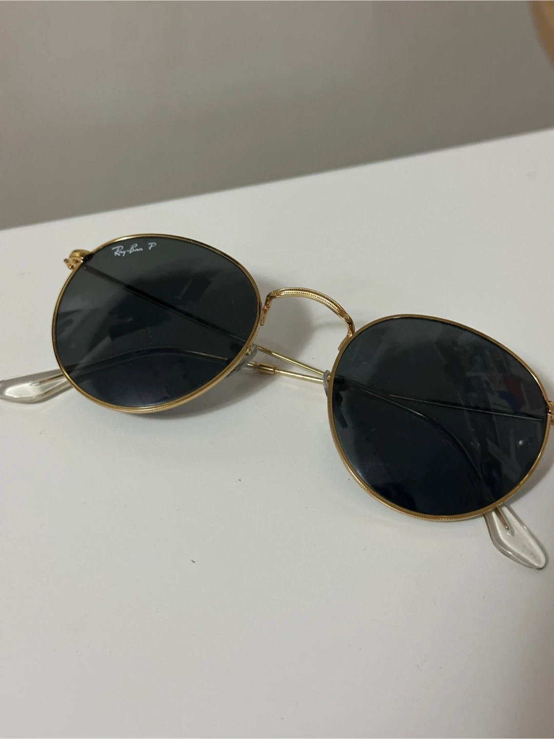 Selling a pair of Ray-Ban RB3447 Round Metal sunglasses. They feature a gold frame and polarized lenses. Comes with the original Ray-Ban case! Gently used