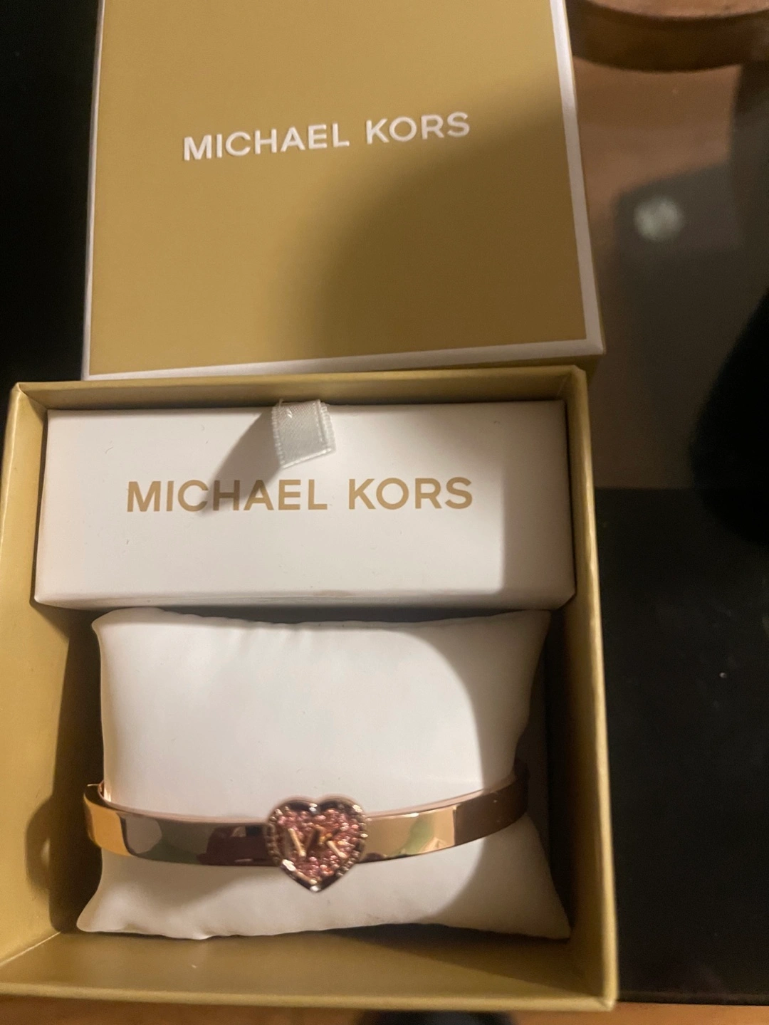Selling a Michael Kors rose gold bangle with a heart detail. It comes with the original box and packaging, perfect as a gift for someone special or yourself! The bangle is in excellent condition.