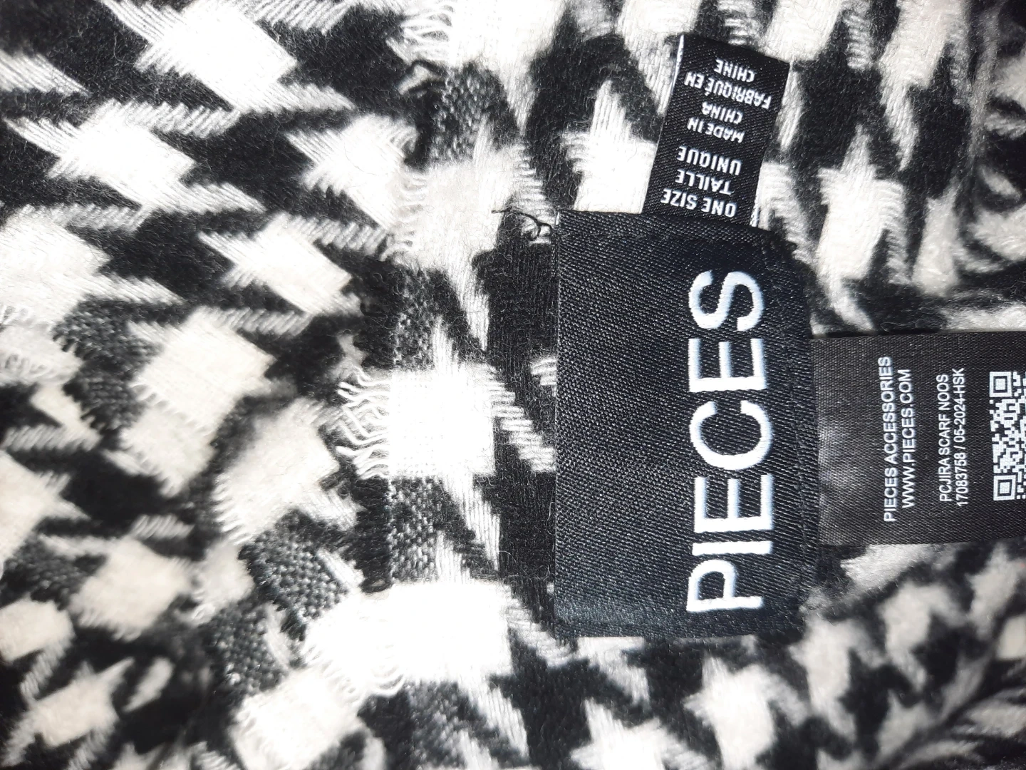 Pieces is a Danish fashion brand that was launched in 2003 and is part of the Bestseller group. The brand offers clothing and accessories for women. The label in the image also provides the brand's website,
