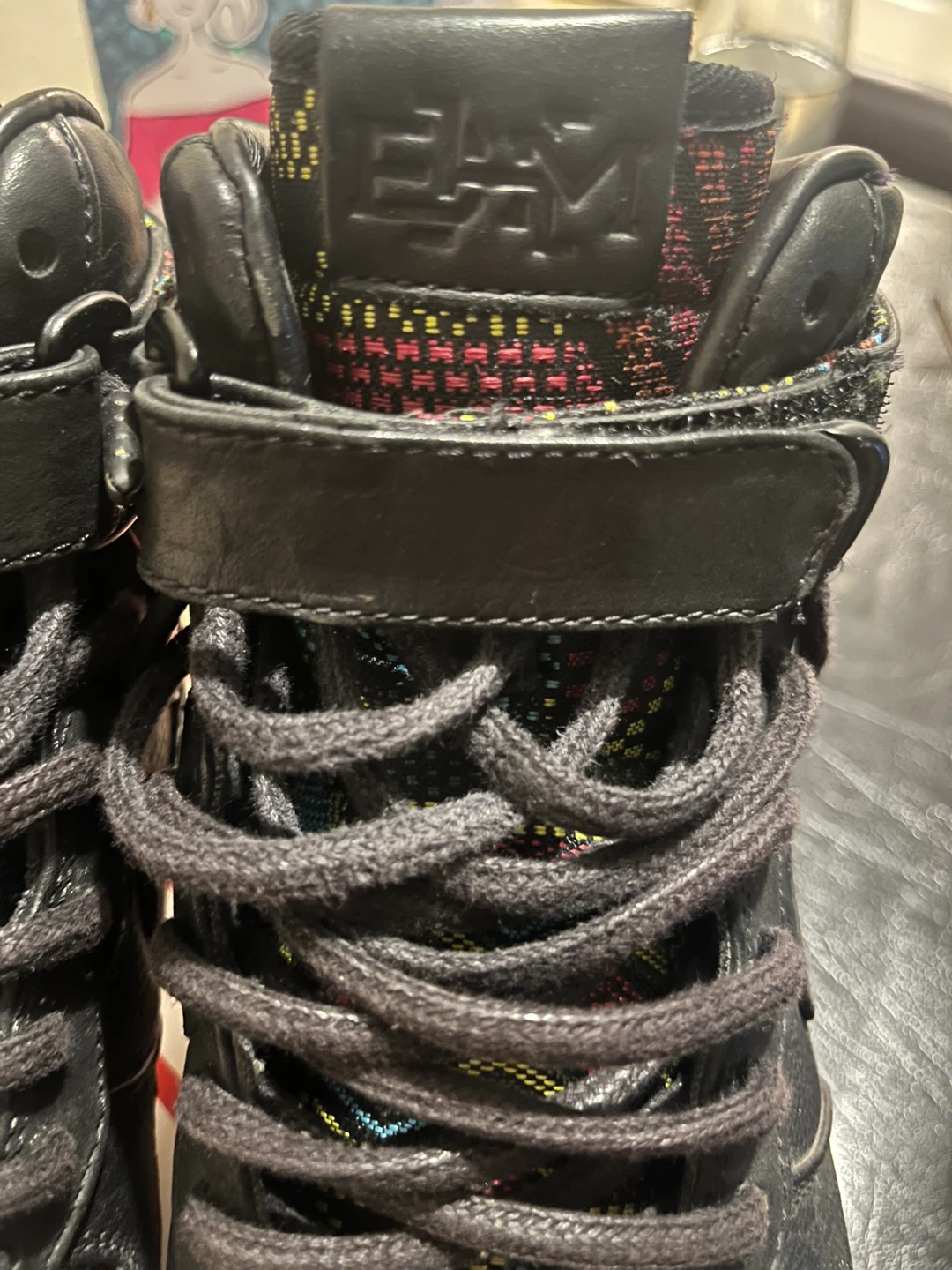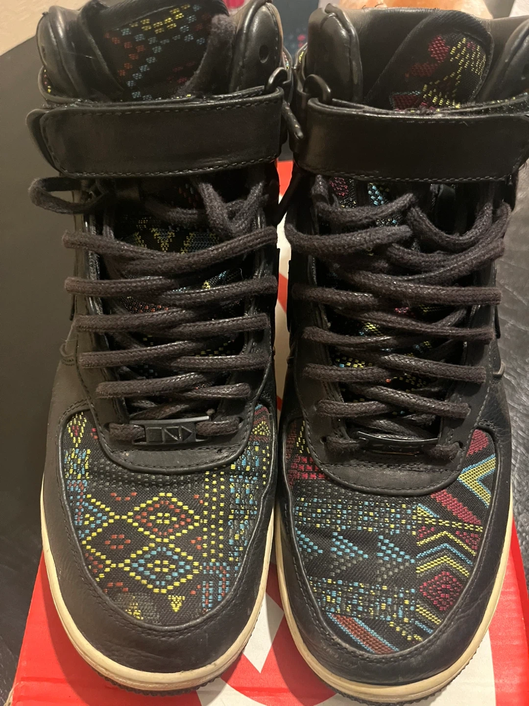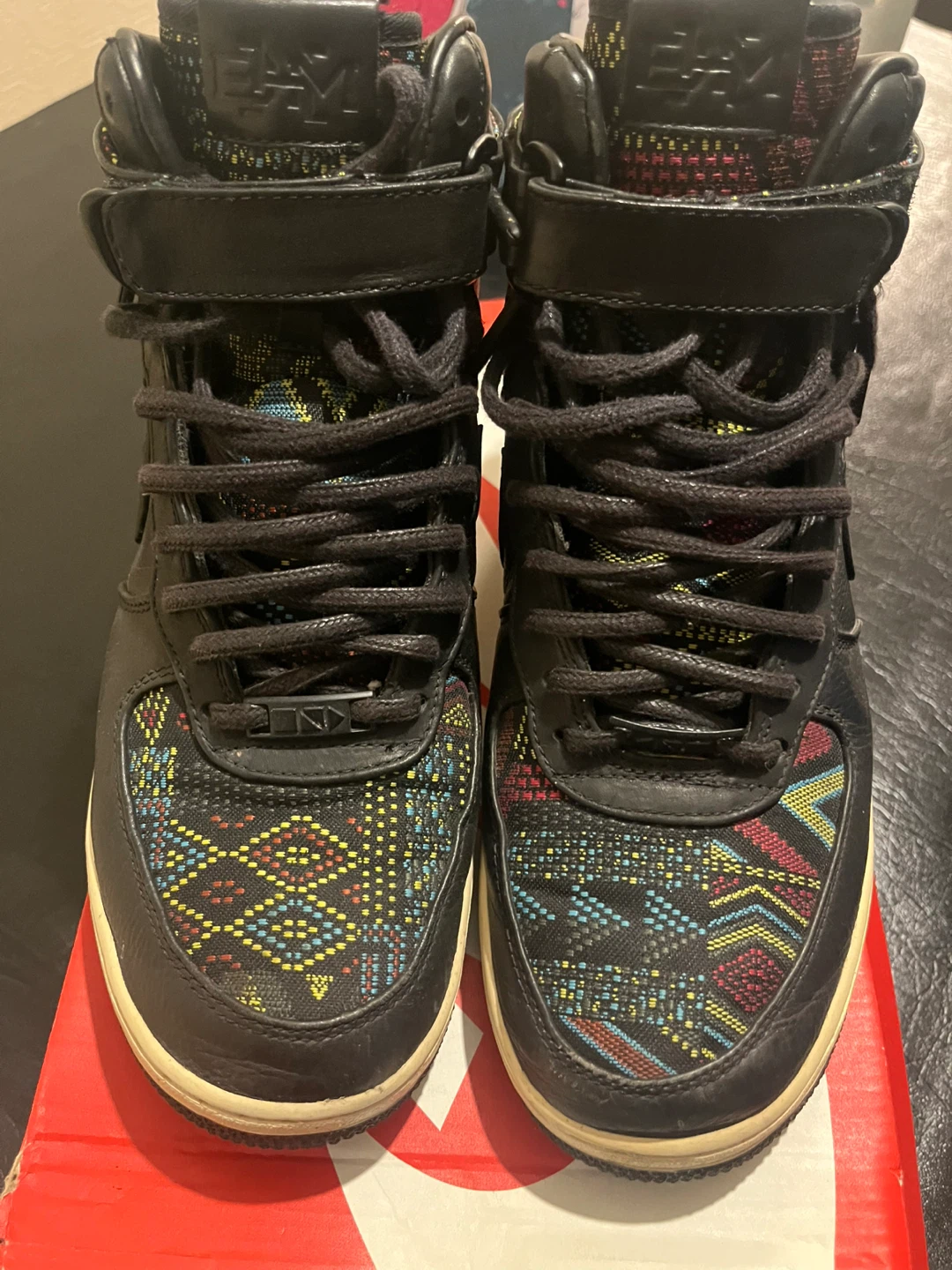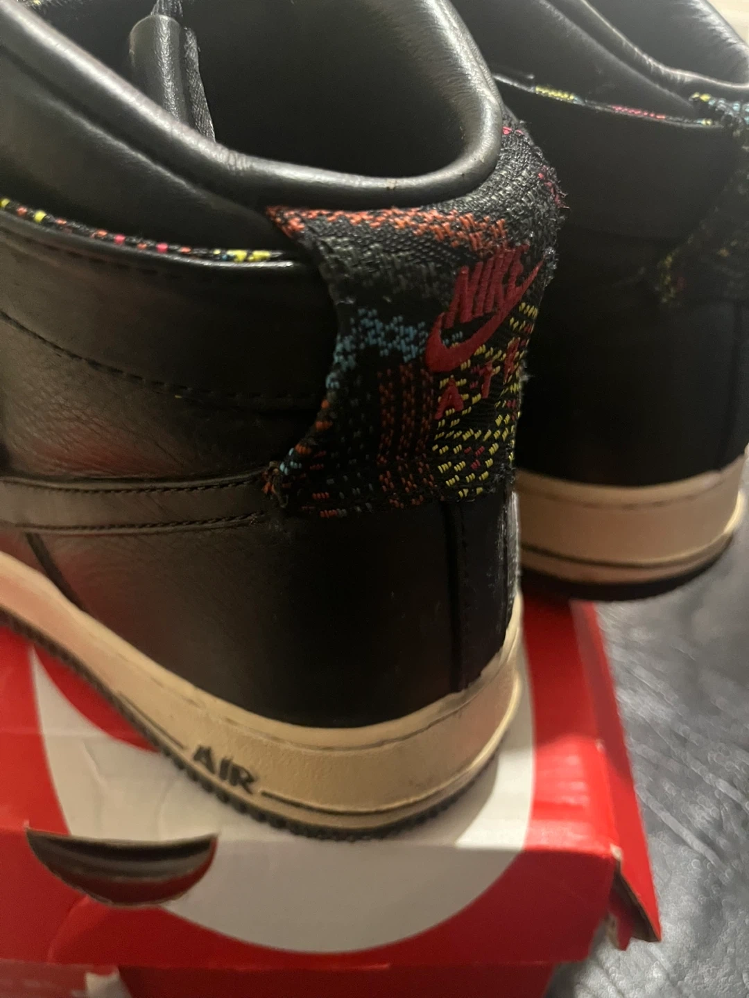 Selling a pair of Nike Air Force 1 High Premium shoes in black. They're in great condition and come with the original box!