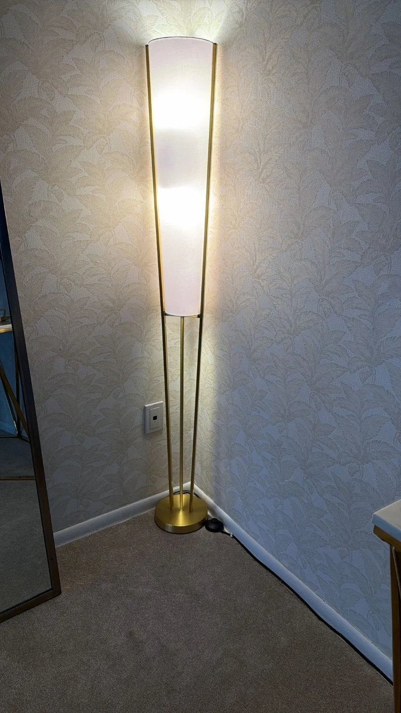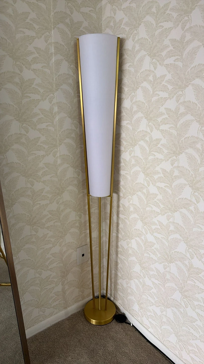 Selling a stylish gold floor lamp! It adds a touch of elegance to any room. The lamp is in great condition and provides a warm, inviting light. Perfect for creating a cozy atmosphere in your living space. Bought it for $400 + Tax only 6 months ago.