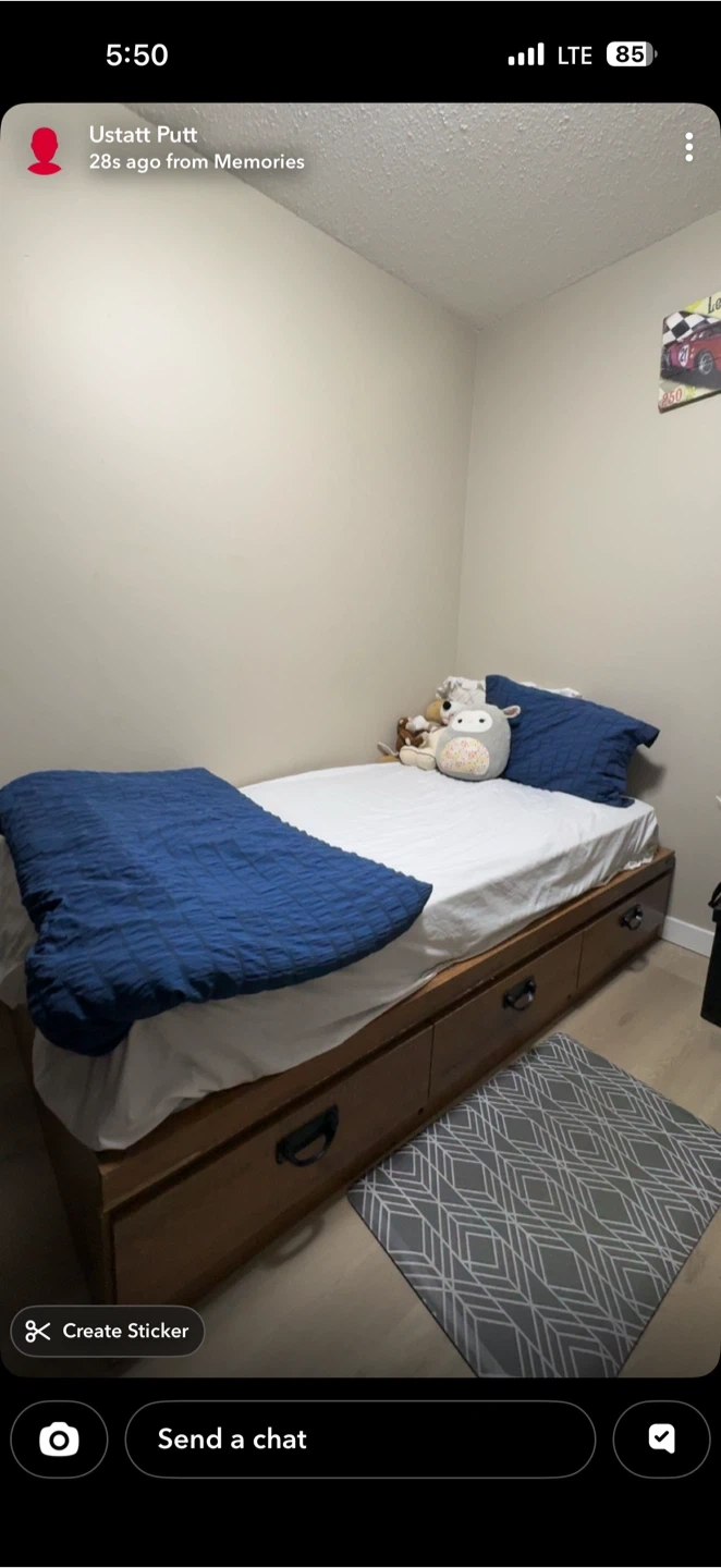 Selling a twin bed frame that comes with built-in storage drawers underneath! It's a great space-saving solution for smaller rooms or anyone needing extra storage. The bed frame is in good condition and ready for a new home