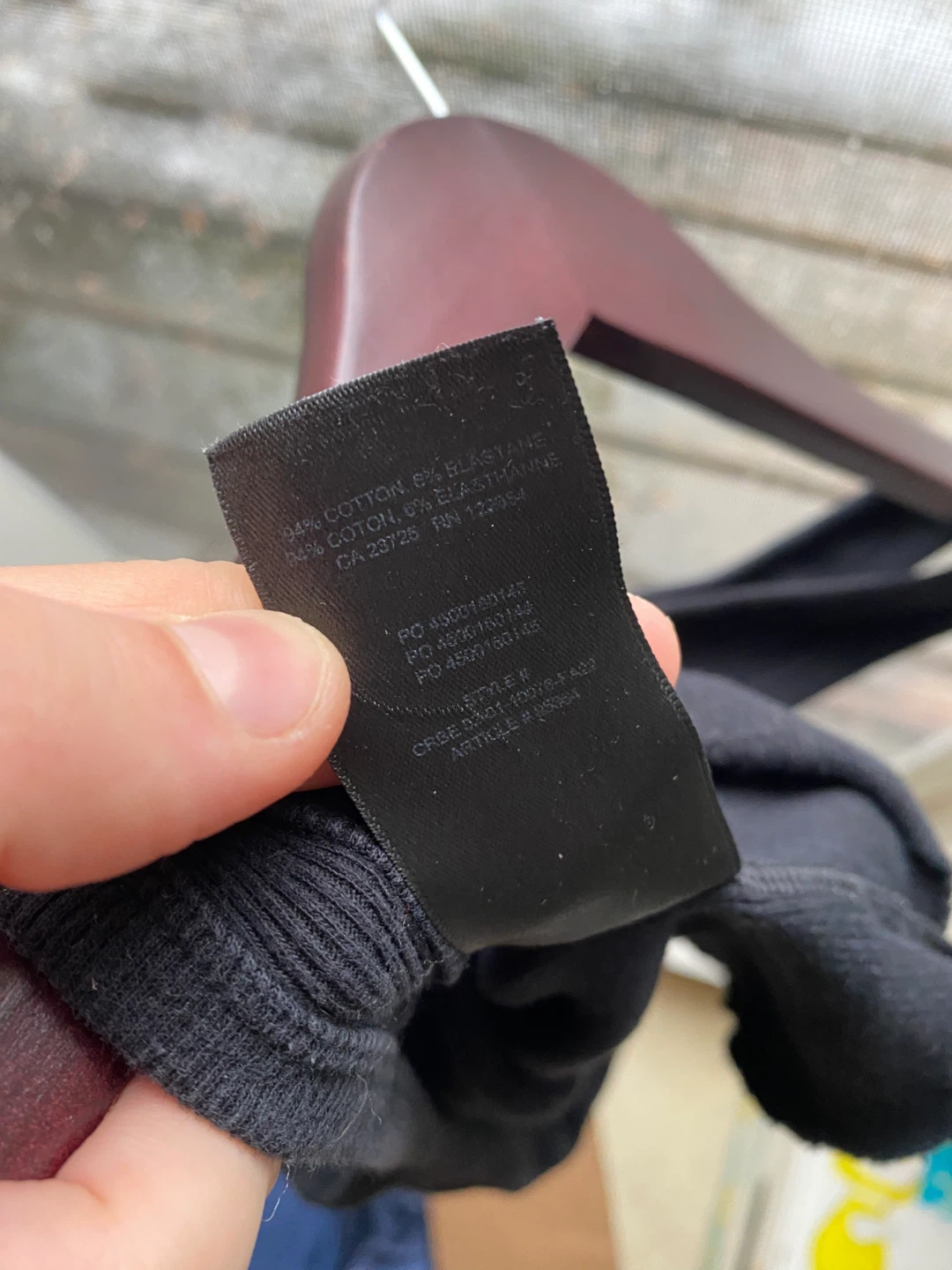 It's a size small and made of 94% cotton and 6% elastane. It's in great condition