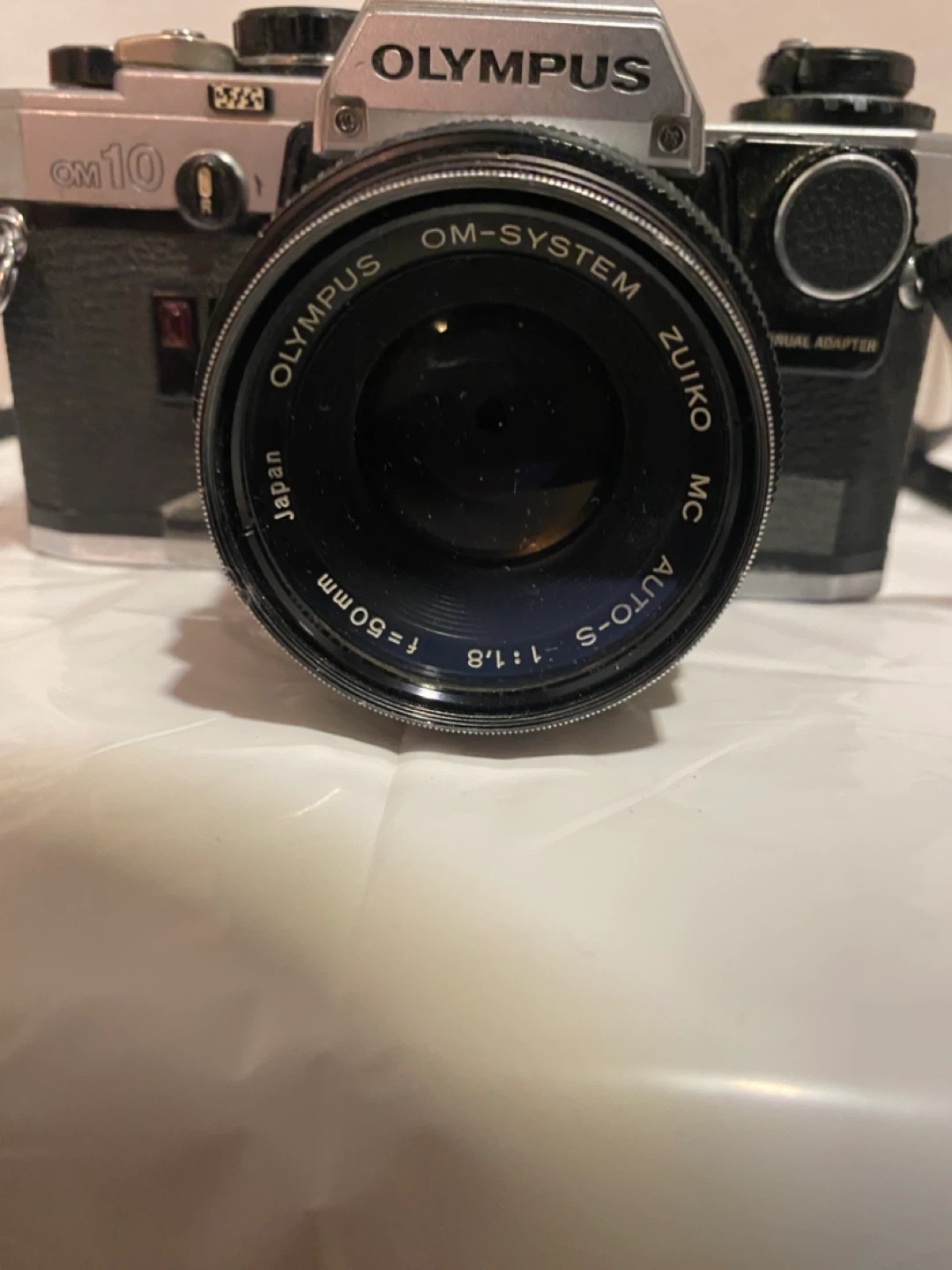 Selling an Olympus OM10 35mm film camera. It's in used/unknown condition. This listing also comes paired with a lens which on its own holds value and the lens is in good condition and a used leather strap. Perfect for someone interested in film photography!