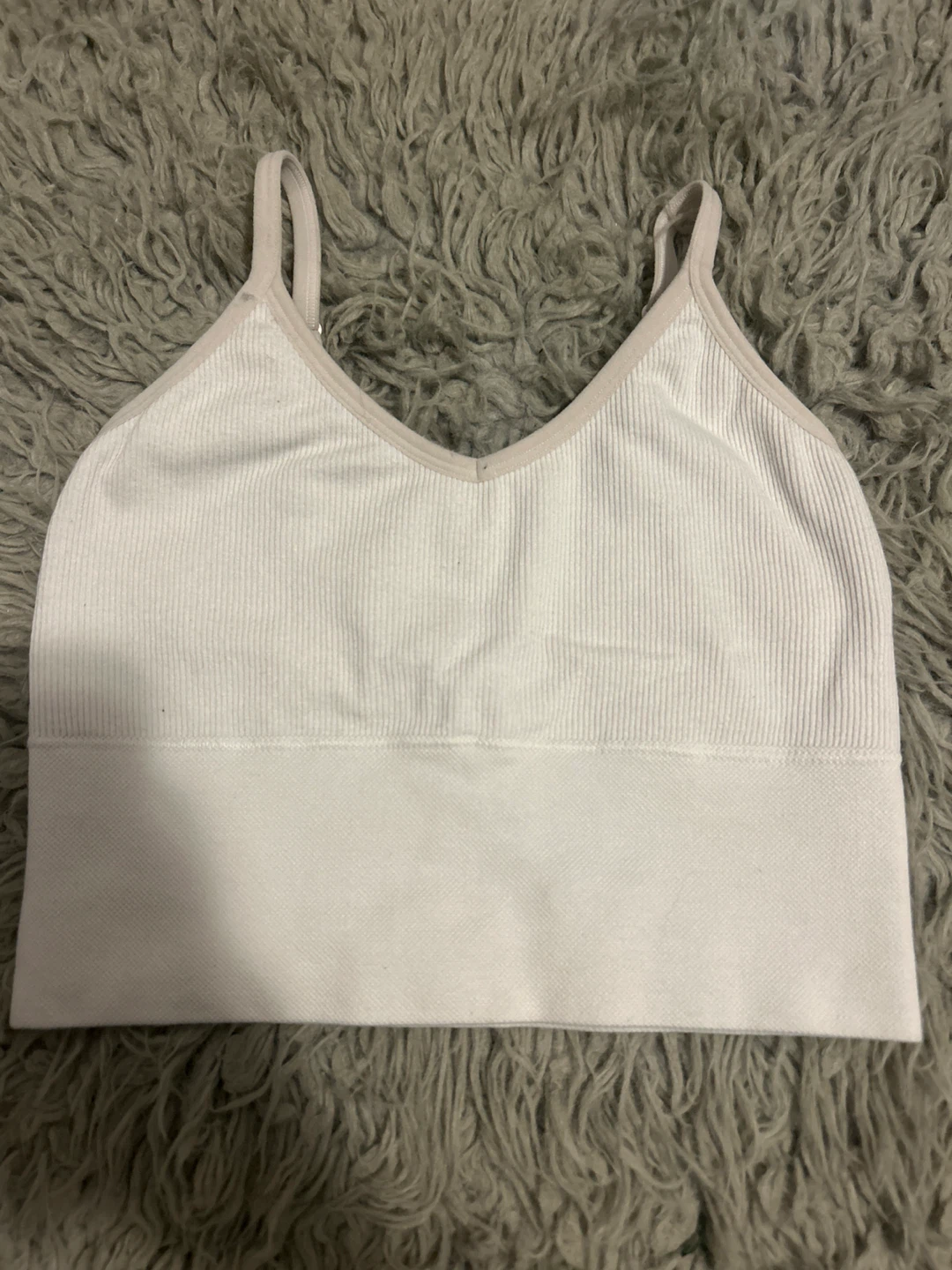 Selling a white cropped tank top. It's in great condition and ready for a new wardrobe! It's a versatile piece that can be dressed up or down. Perfect for layering or wearing on its own during warmer weather