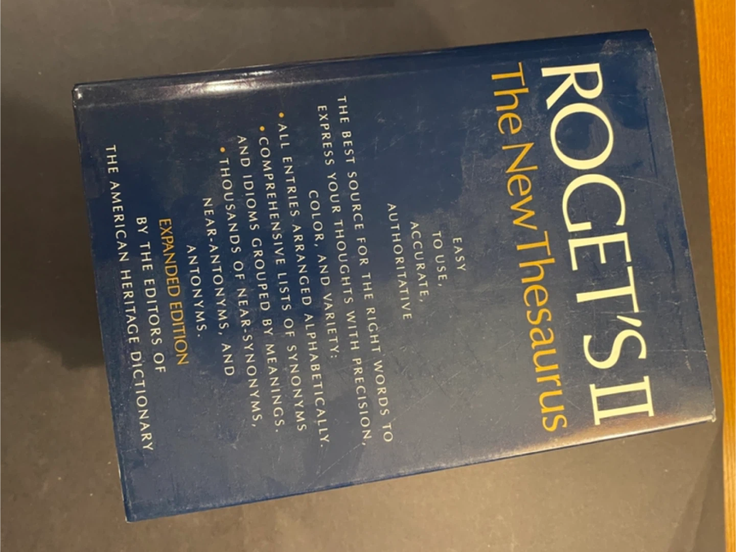 Selling a used copy of Roget's II: The New Thesaurus. It's an expanded edition by the editors of The American Heritage Dictionary. This thesaurus is easy to use, accurate, and authoritative. It's the best source for the right words to express your thoughts with precision, color, and variety! It features alphabetically arranged entries and comprehensive lists of synonyms and idioms grouped by meanings