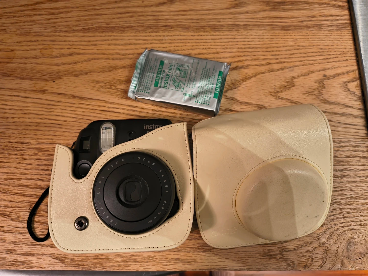 Selling a Fujifilm Instax Mini camera. It comes with a case for protection and easy carrying. The lens is 60mm. Also included is Instax Mini film, with an expiry date of November 2026