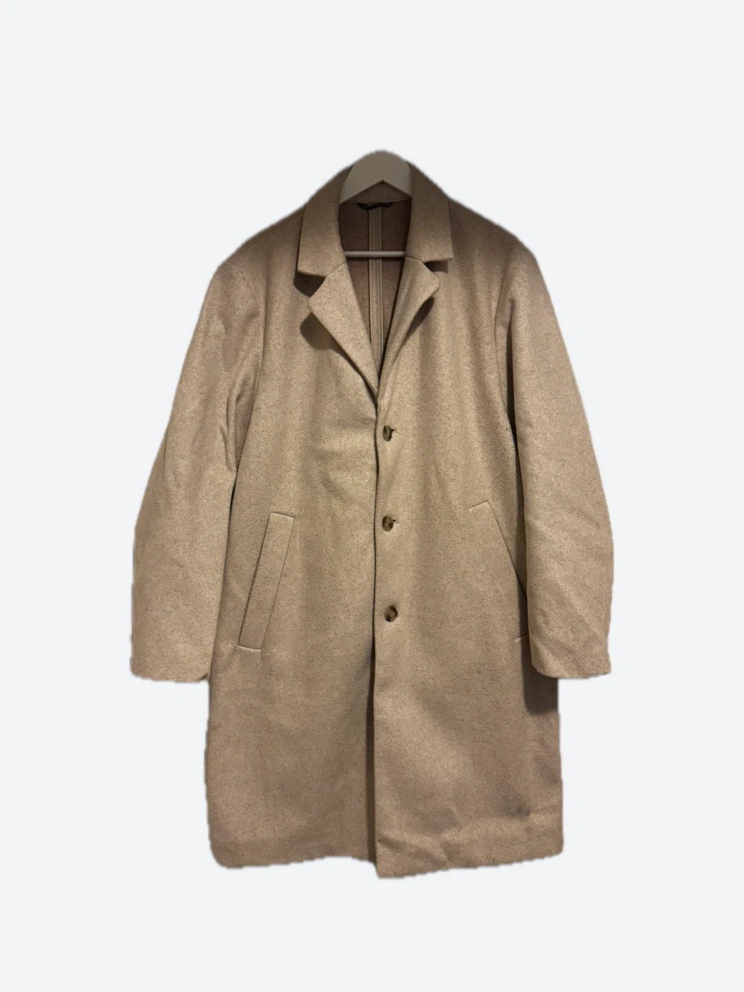 Selling a beige/cream coloured overcoat in good condition. It’s a classic design with a button-down front and functional pockets. It's made with a wool+polyester blend. Great for spring weather.