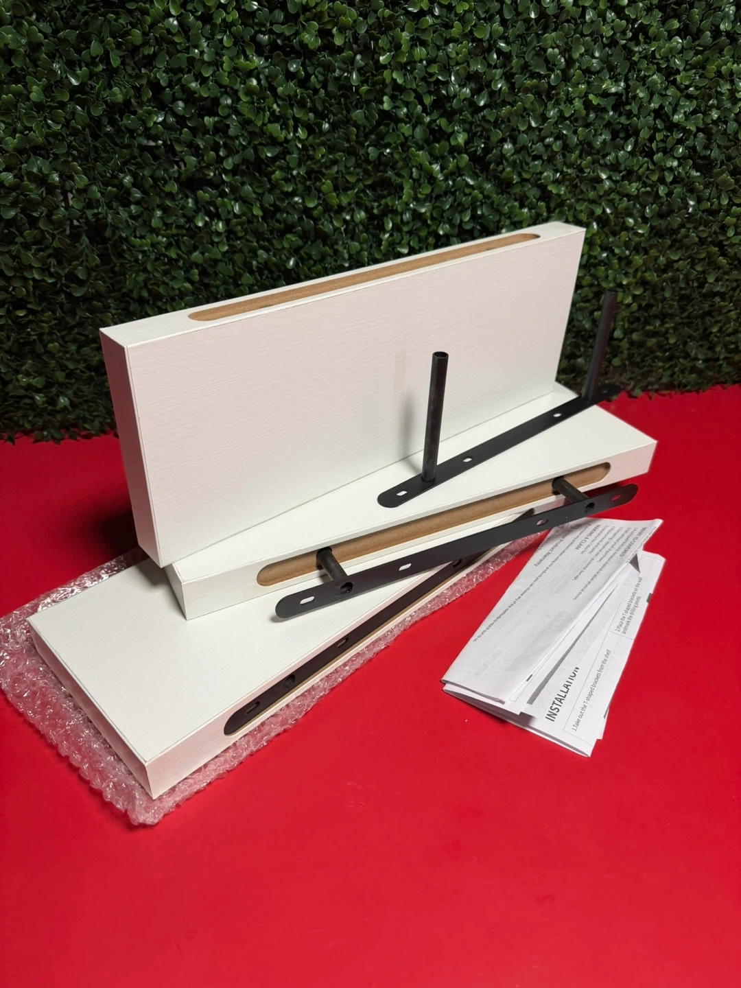 Selling a set of brand new white floating shelves, still in their original packaging! These shelves come with all the necessary brackets and installation instructions, so you can easily mount them. They're perfect for adding a touch of modern style to any room and keeping your space organized.