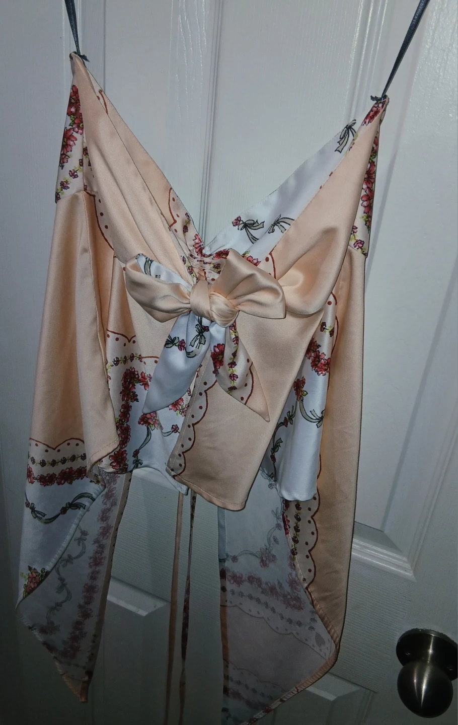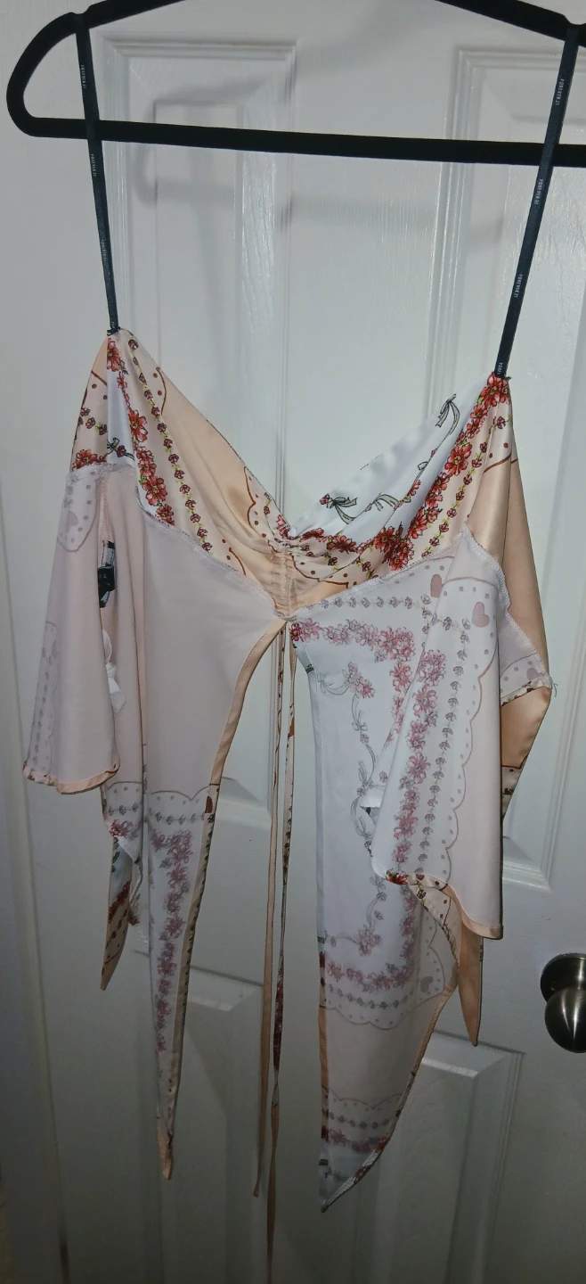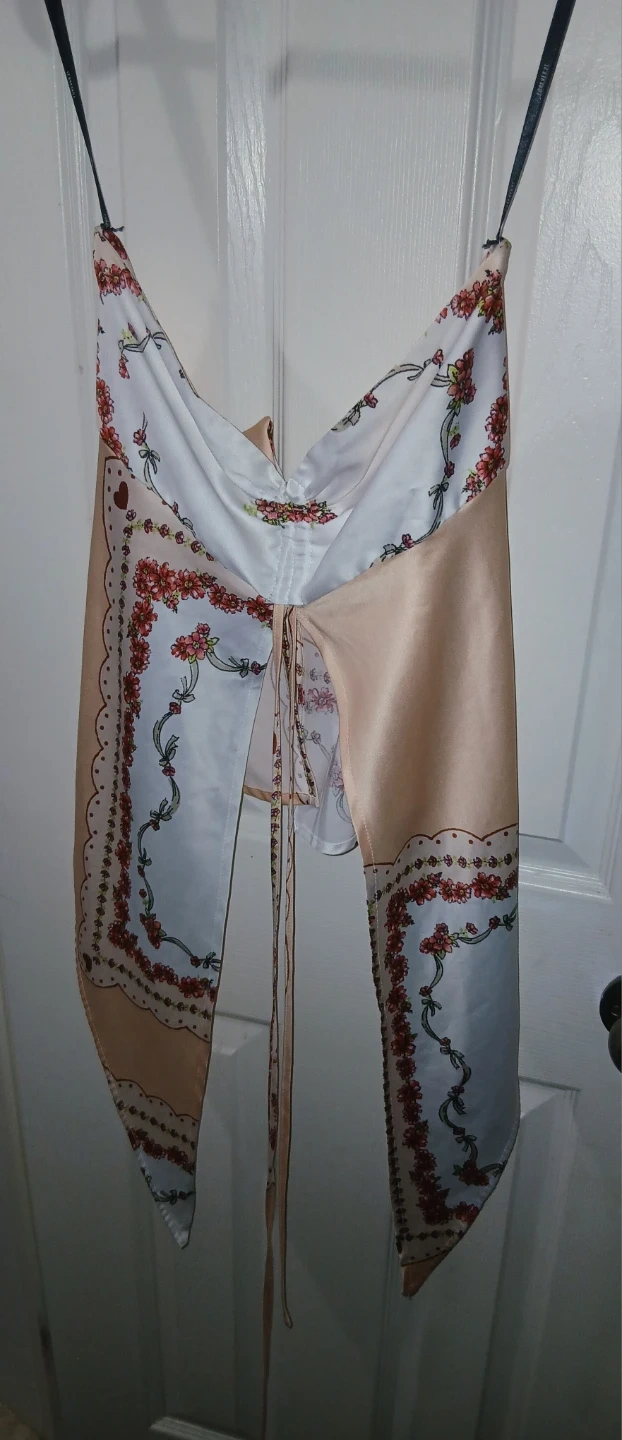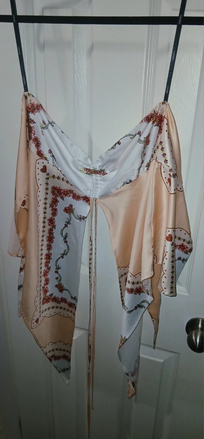 This strapless Forever 21 top in size small features a unique floral print and is tied in the back. Perfect for adding a touch of flair to your wardrobe!